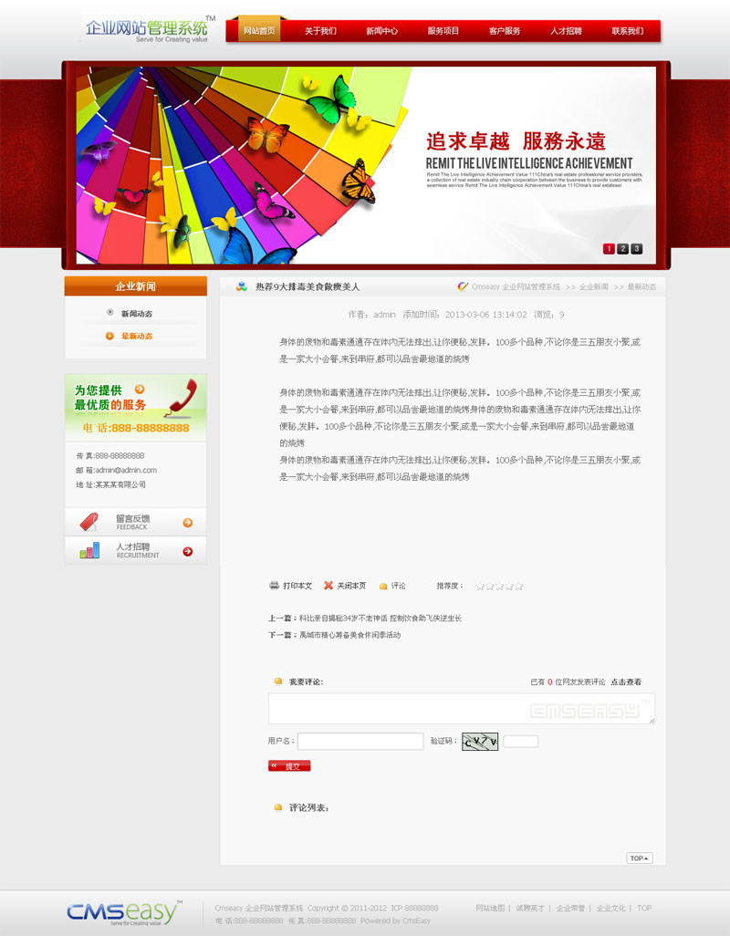 免费系统可以使用商业模板,但前后台要保留易通企业网站系统的软件版权。如果要购买去除版权请点击      购买授权