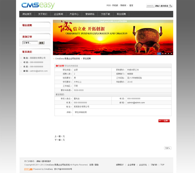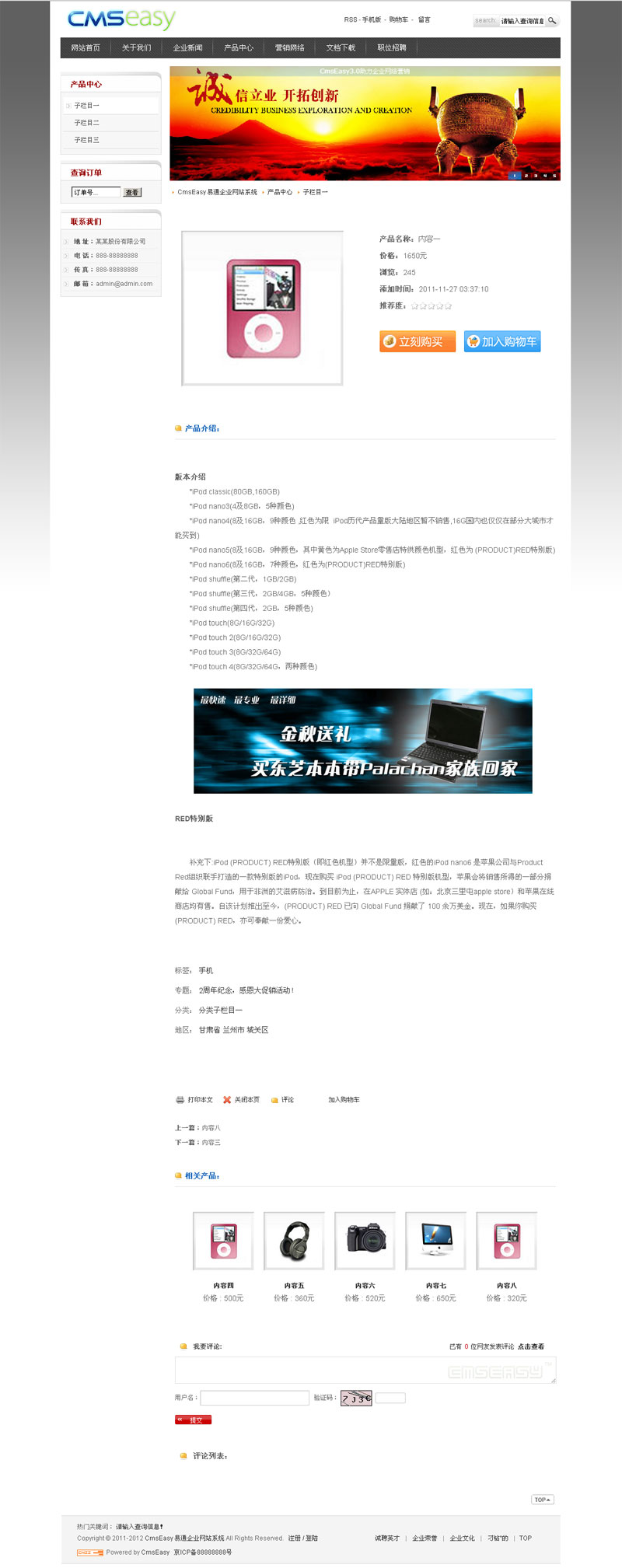 免费系统可以使用商业模板,但前后台要保留易通企业网站系统的软件版权。如果要购买去除版权请点击      购买授权