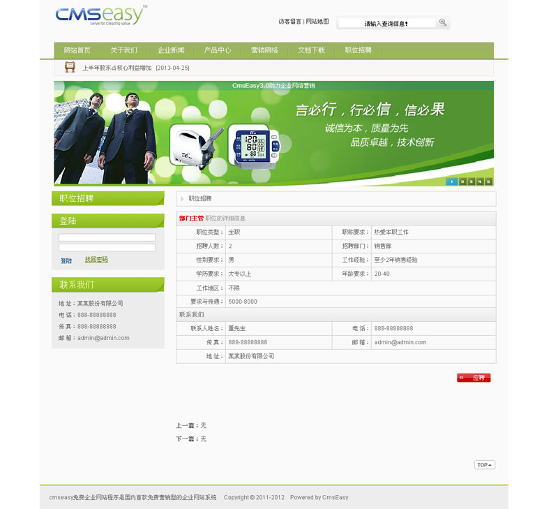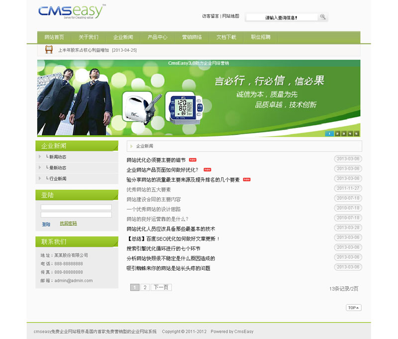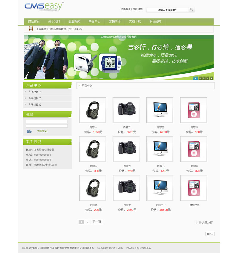 免费系统可以使用商业模板,但前后台要保留易通企业网站系统的软件版权。如果要购买去除版权请点击      购买授权