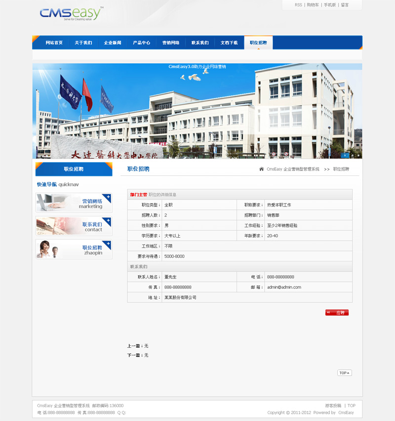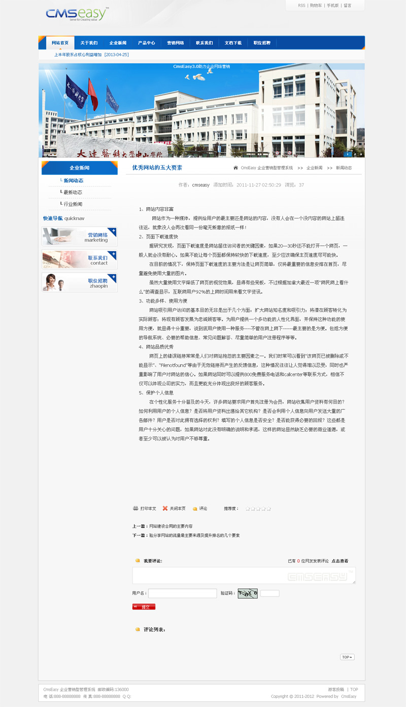 免费系统可以使用商业模板,但前后台要保留易通企业网站系统的软件版权。如果要购买去除版权请点击      购买授权