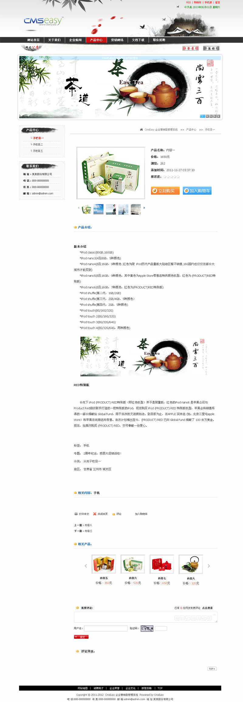 • 中国风水墨礼品企业网站模板,公司网站模板