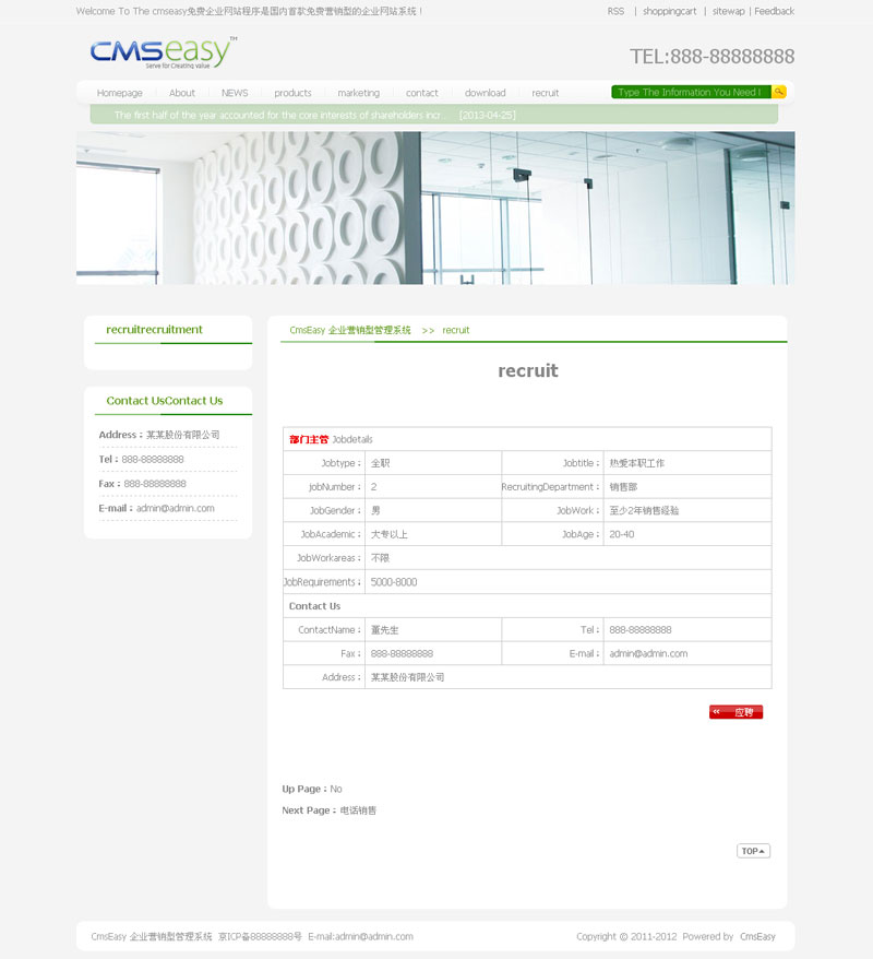 免费系统可以使用商业模板,但前后台要保留易通企业网站系统的软件版权。如果要购买去除版权请点击      购买授权