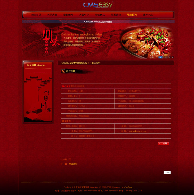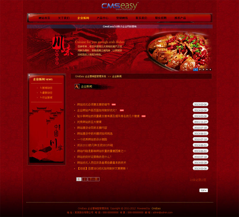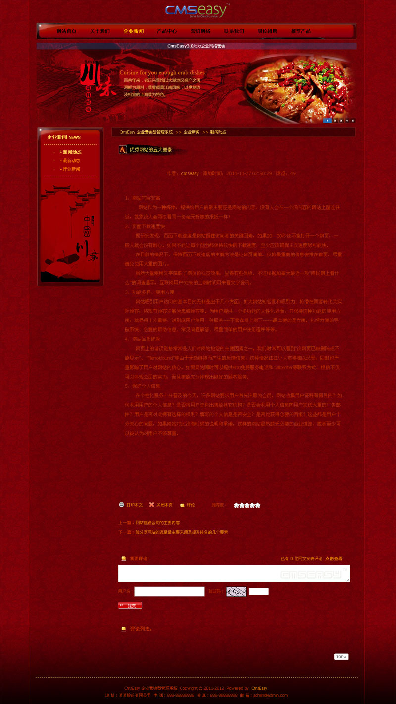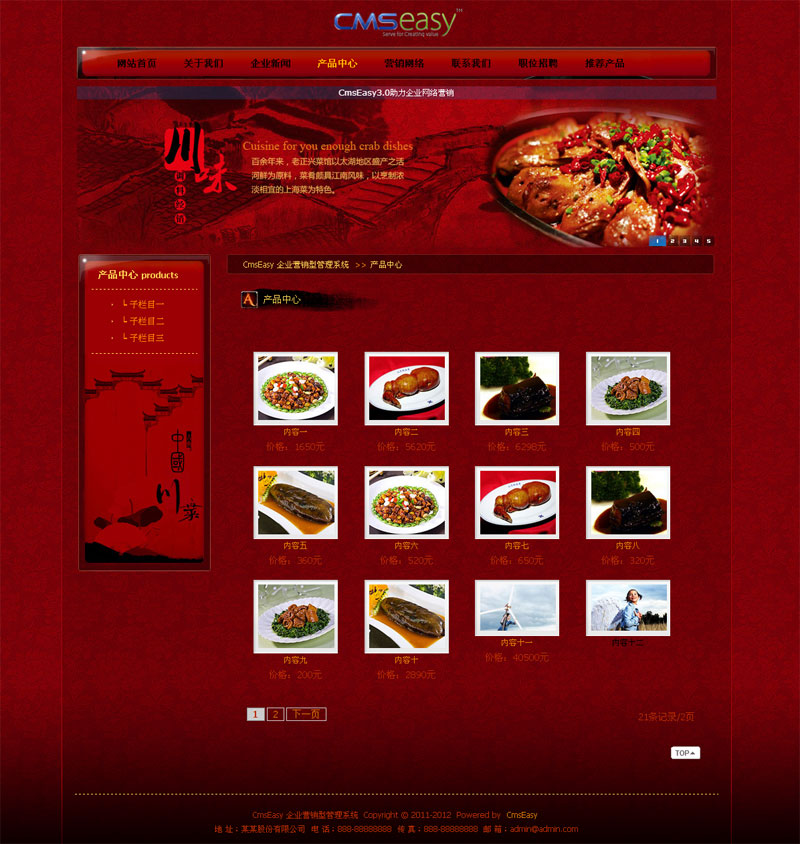 • 漂亮的四川红色餐饮加盟企业网站模板,公司网站模板