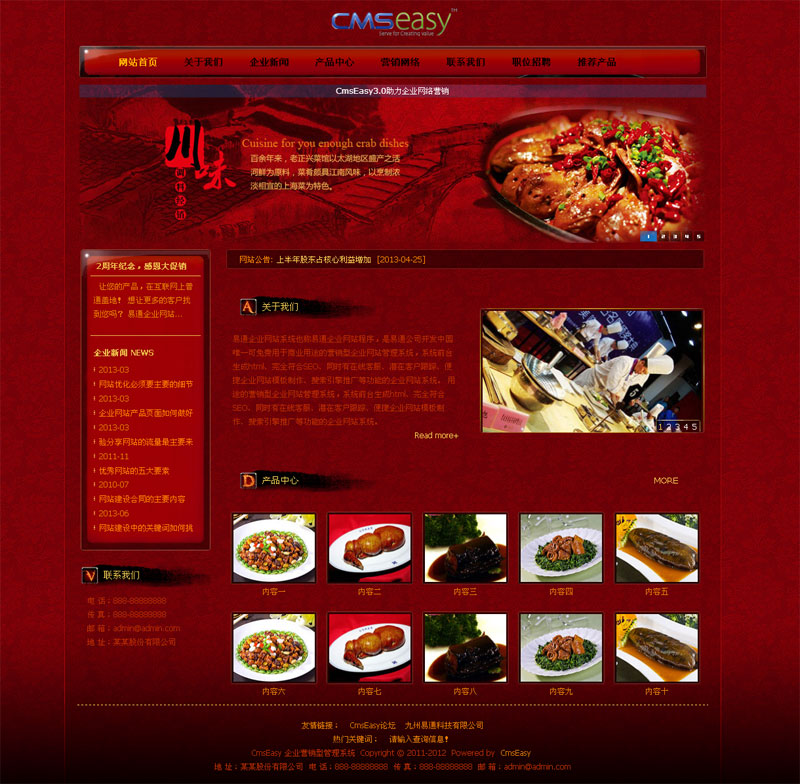 漂亮的四川红色餐饮加盟企业网站模板,公司网站模板