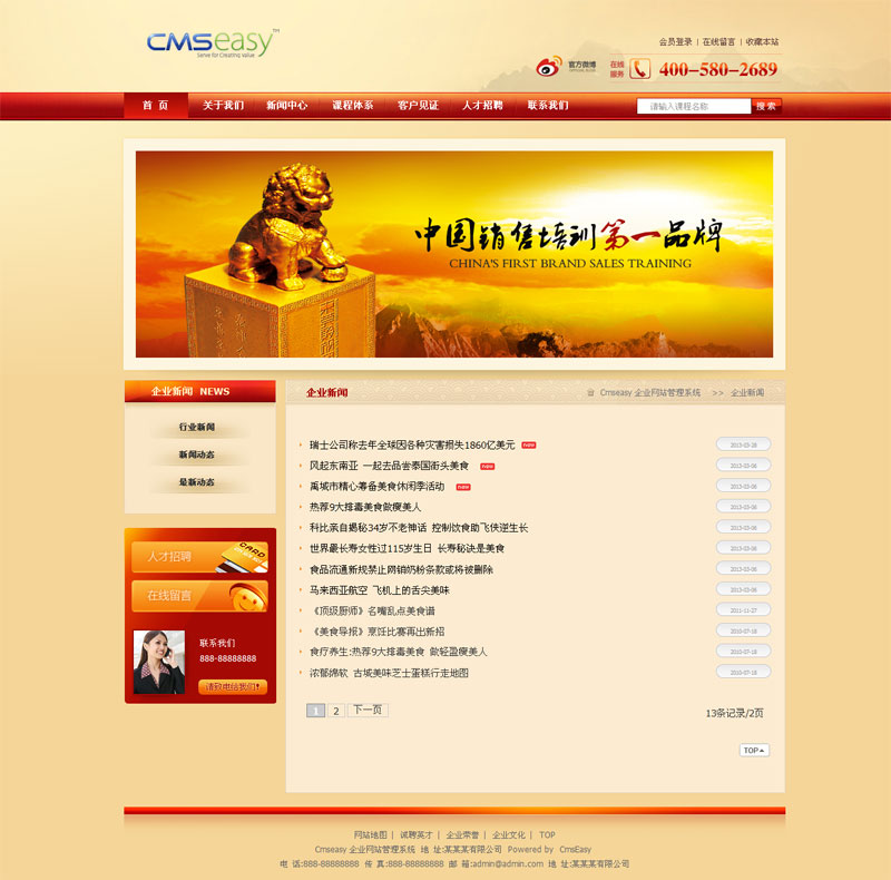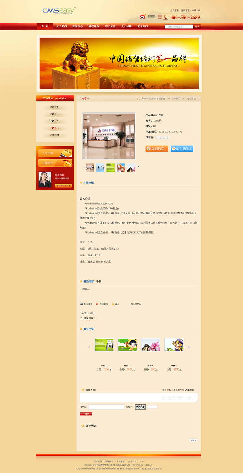 免费系统可以使用商业模板,但前后台要保留易通企业网站系统的软件版权。如果要购买去除版权请点击      购买授权