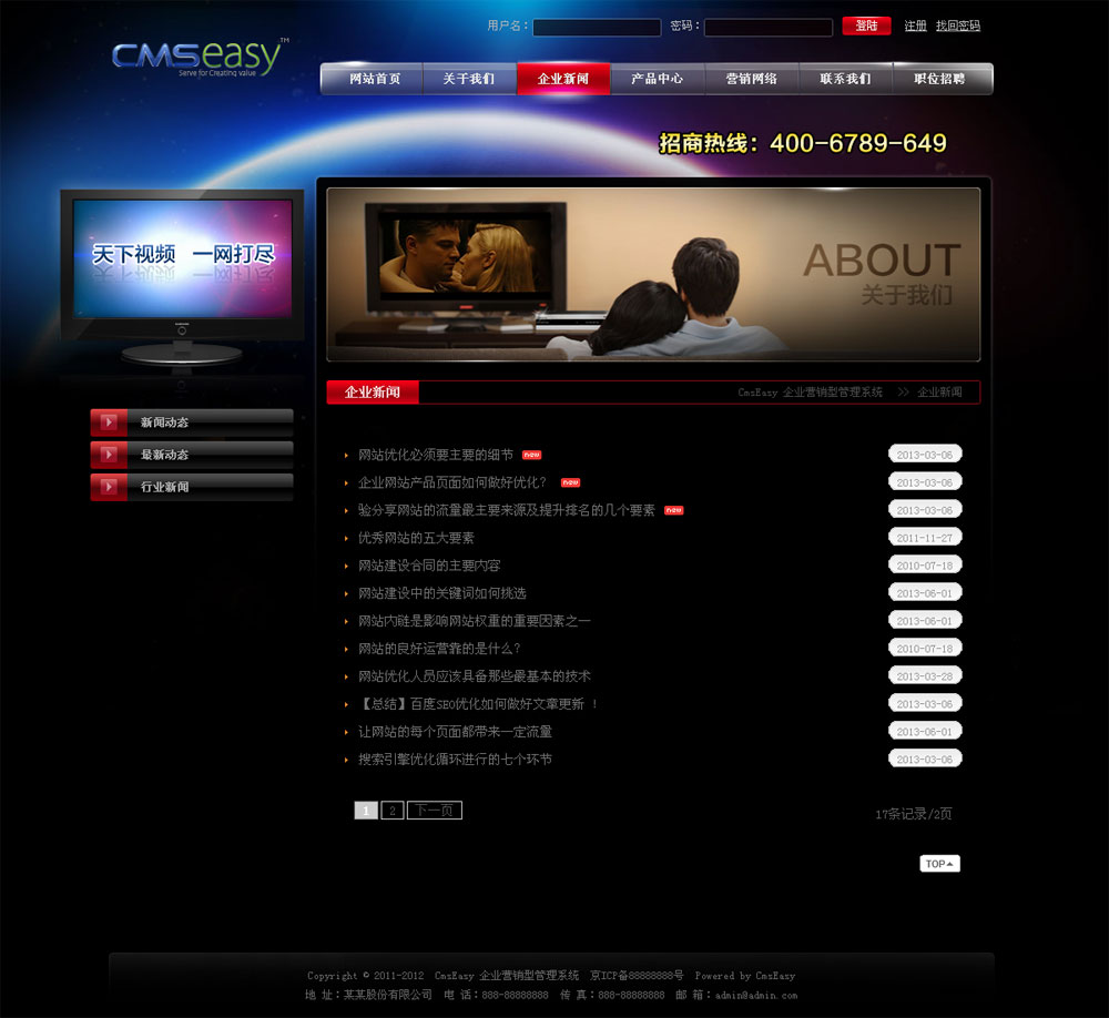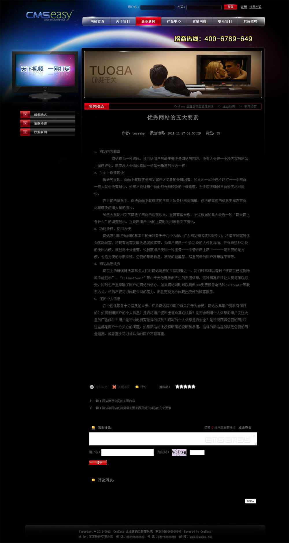 免费系统可以使用商业模板,但前后台要保留易通企业网站系统的软件版权。如果要购买去除版权请点击      购买授权