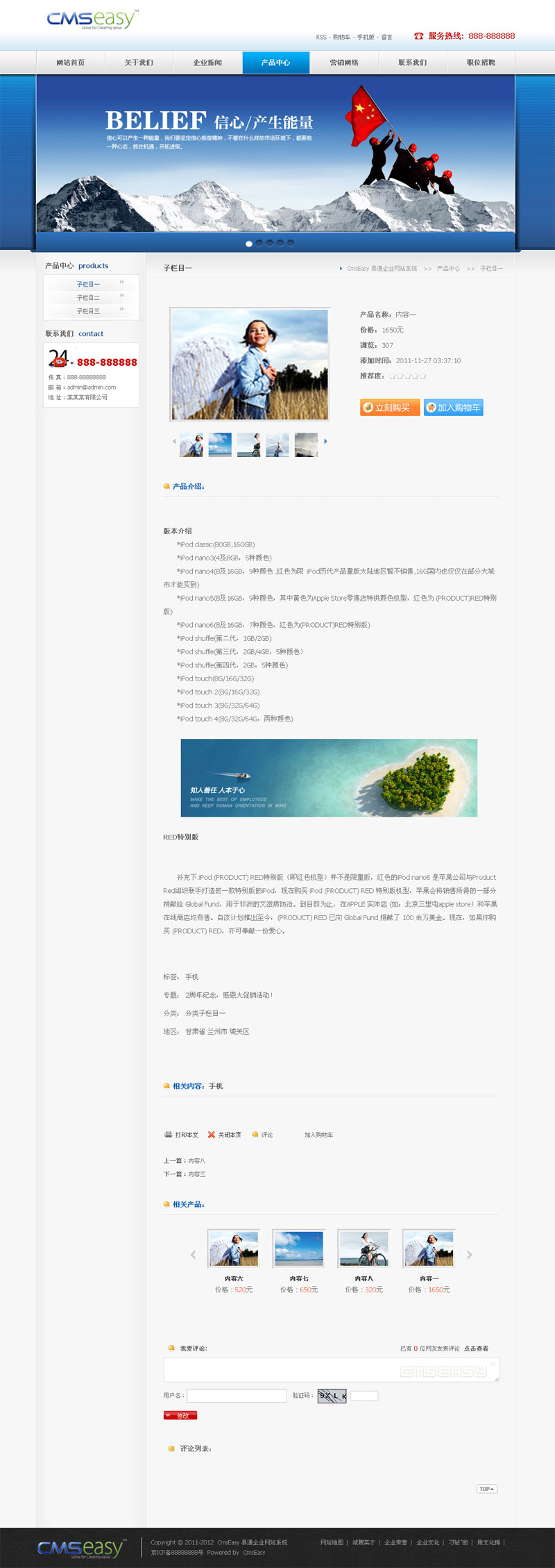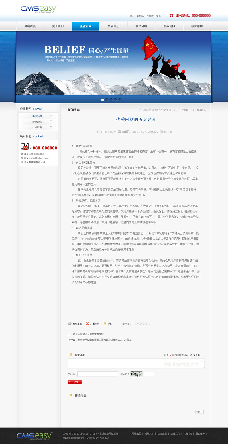 免费系统可以使用商业模板,但前后台要保留易通企业网站系统的软件版权。如果要购买去除版权请点击      购买授权