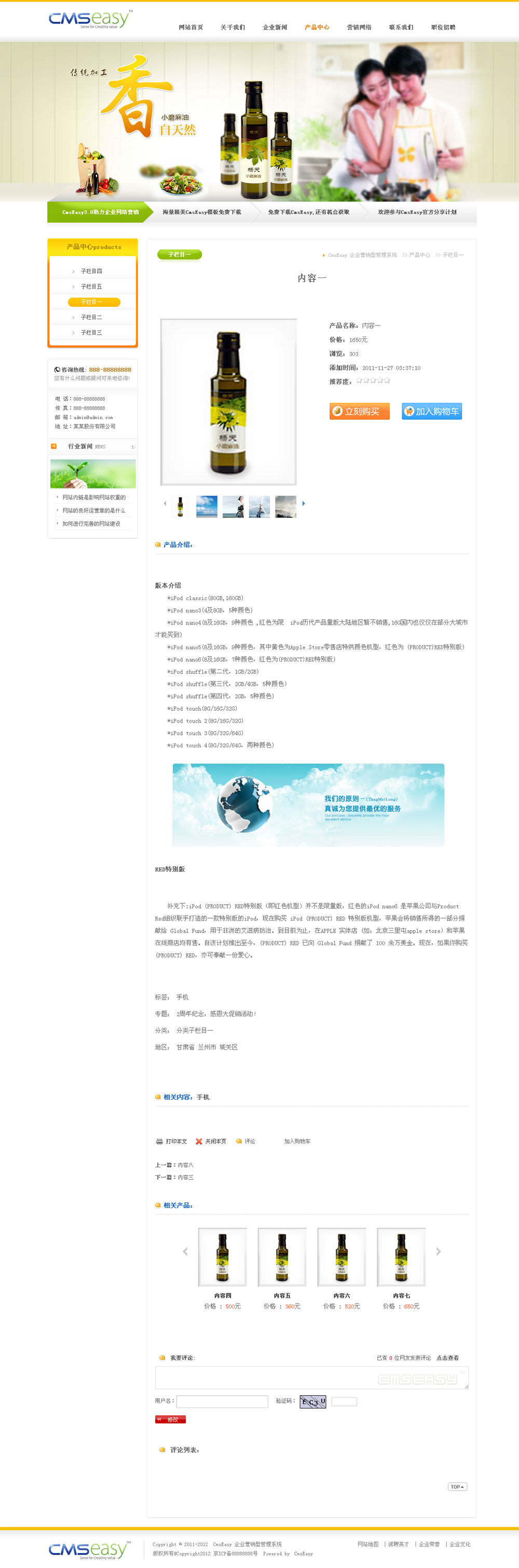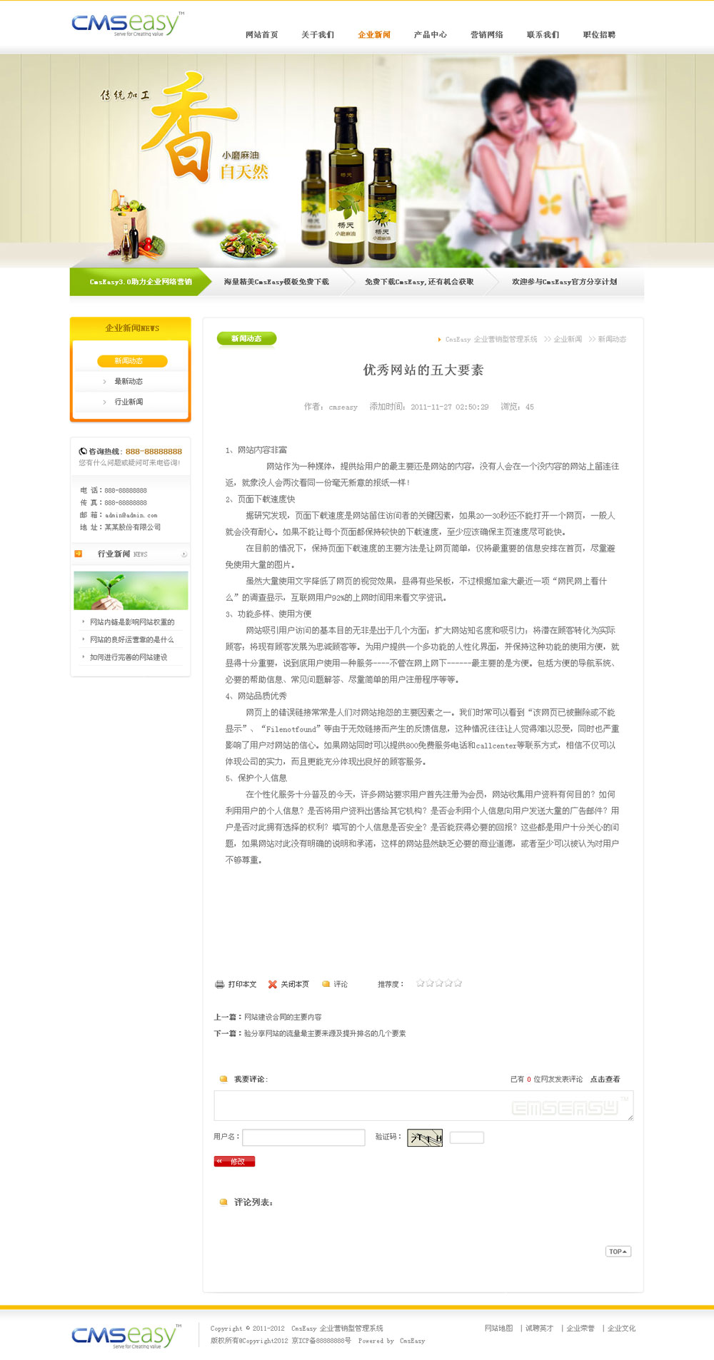 橙色食品调料公司企业网站模板,公司网站模板