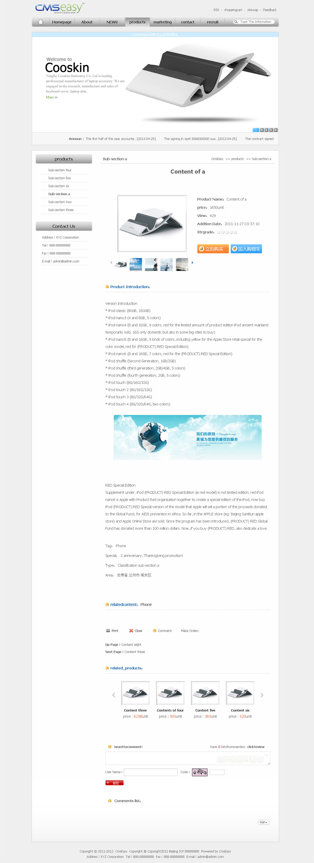 模板的界面风格是固定无法修改的(框架、区块、页面色调等),内容可在后台自行修改,如有细节需要调整请咨询销售人员另外付费处理;
