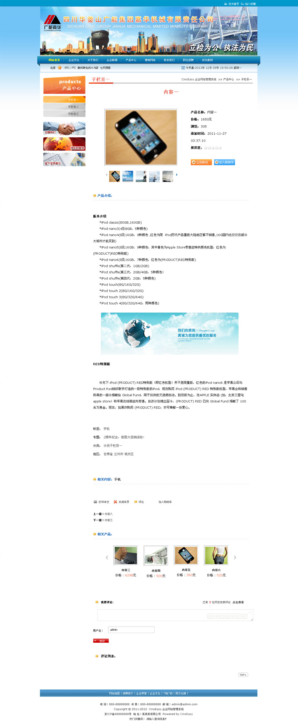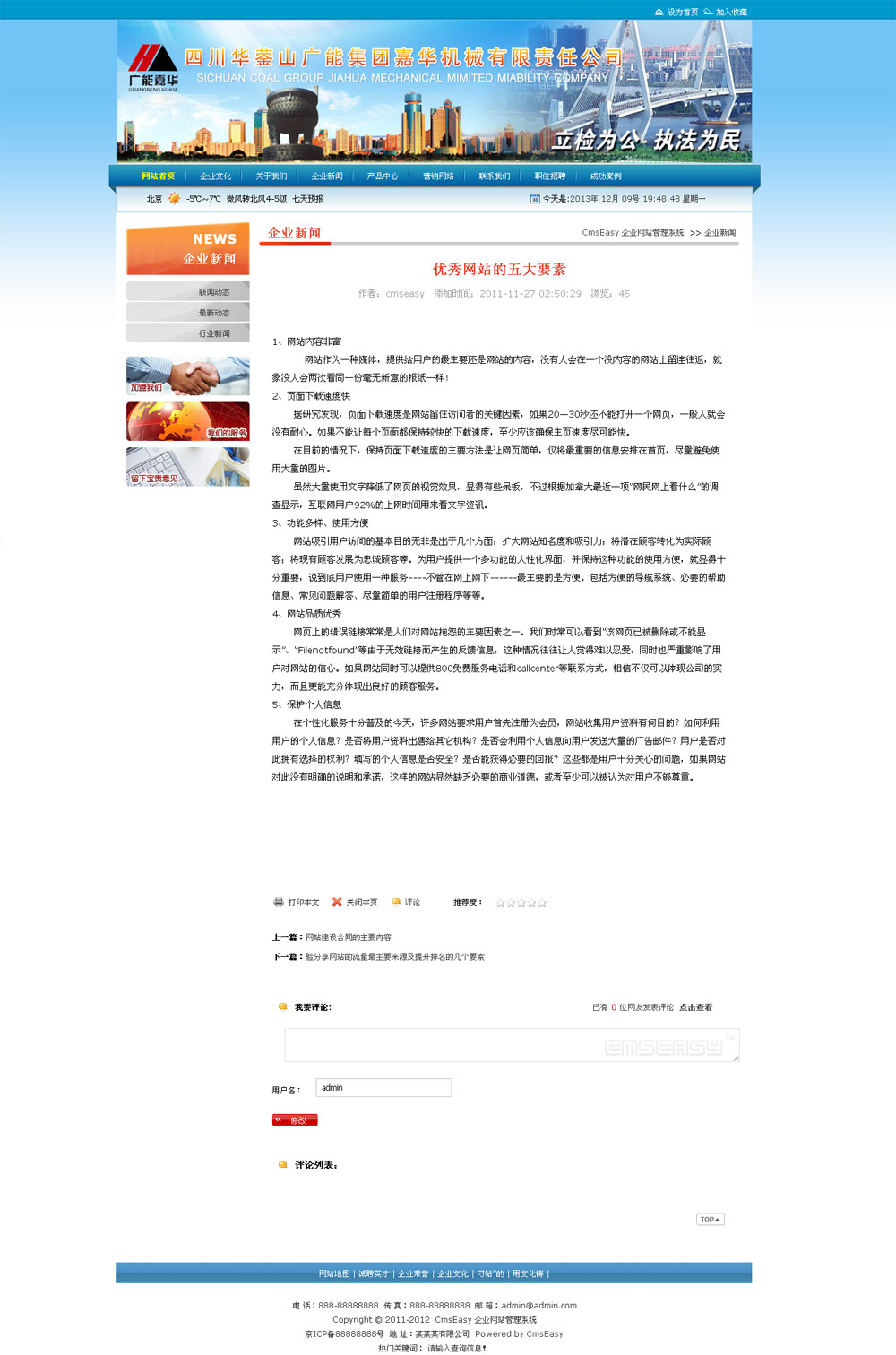 • 蓝色机械机电设备公司企业网站模板,公司网站模板
