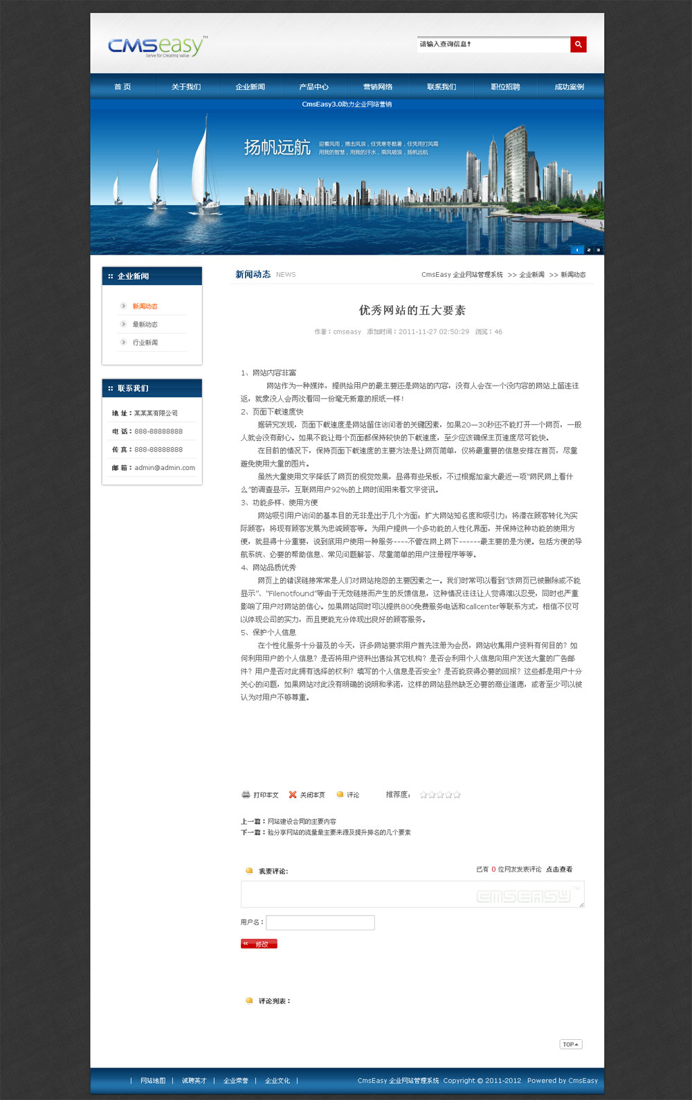 免费系统可以使用商业模板,但前后台要保留易通企业网站系统的软件版权。如果要购买去除版权请点击      购买授权