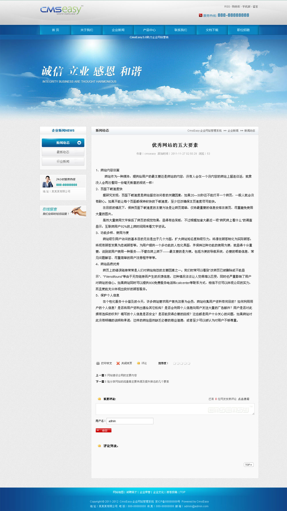 免费系统可以使用商业模板,但前后台要保留易通企业网站系统的软件版权。如果要购买去除版权请点击      购买授权