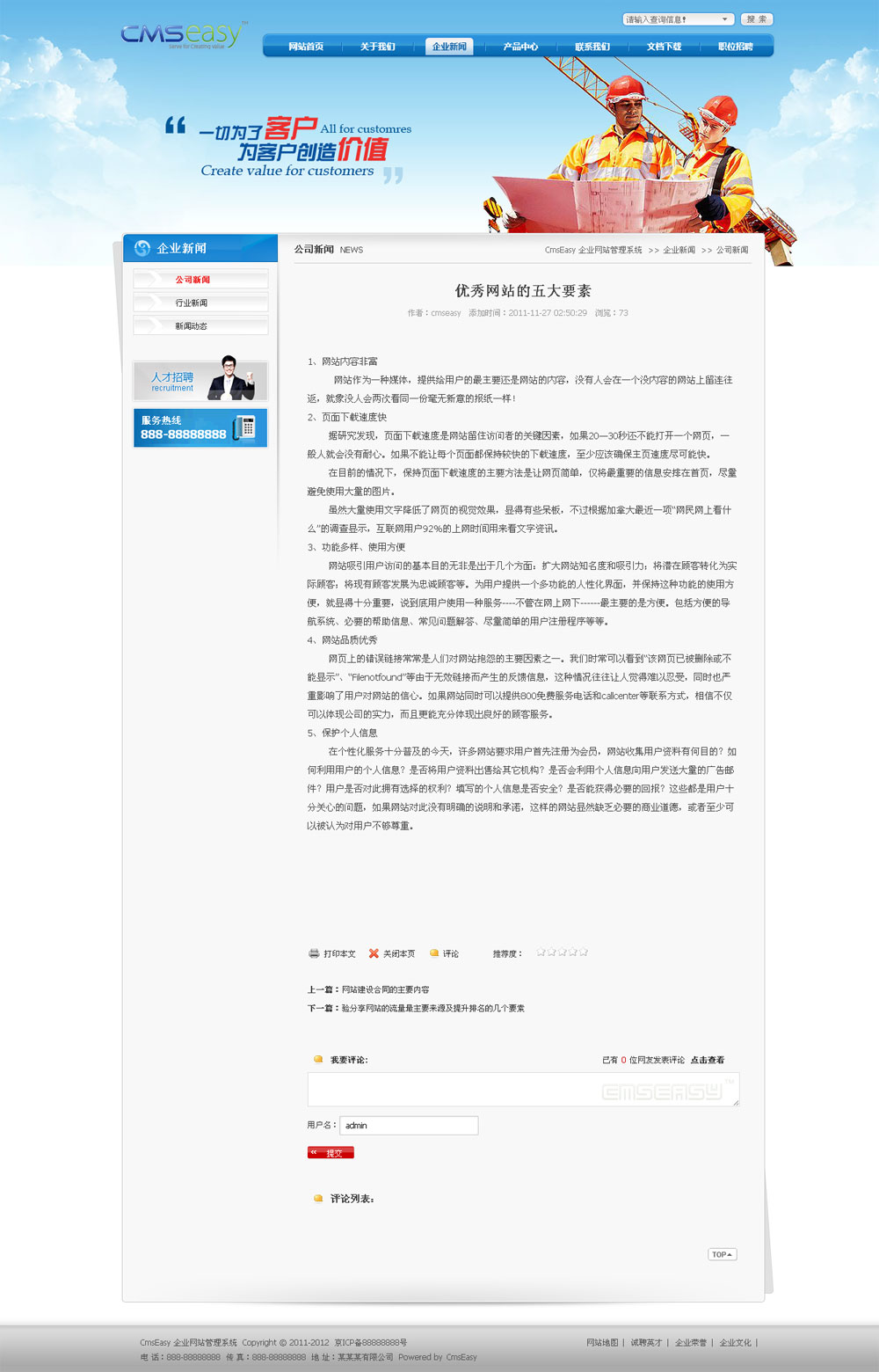 免费系统可以使用商业模板,但前后台要保留易通企业网站系统的软件版权。如果要购买去除版权请点击      购买授权