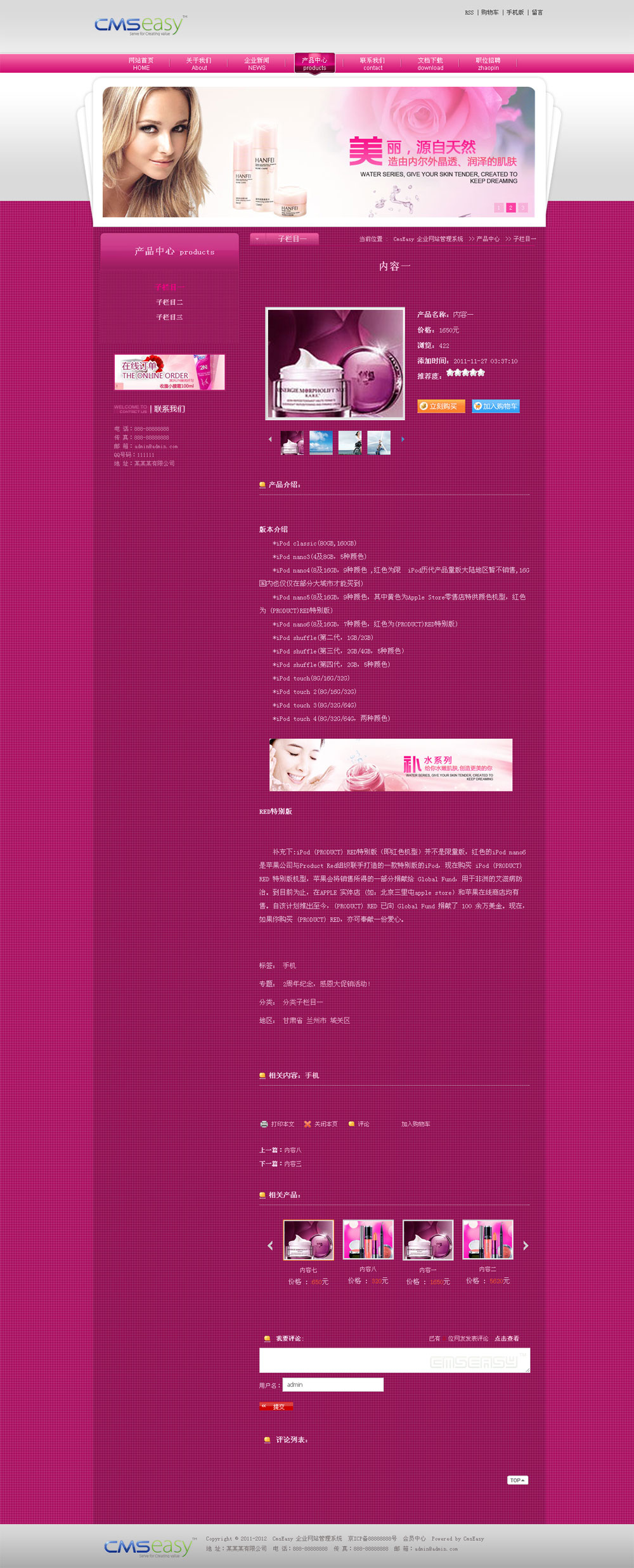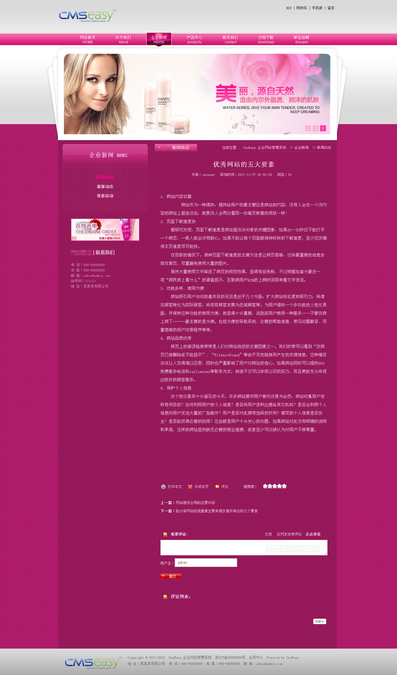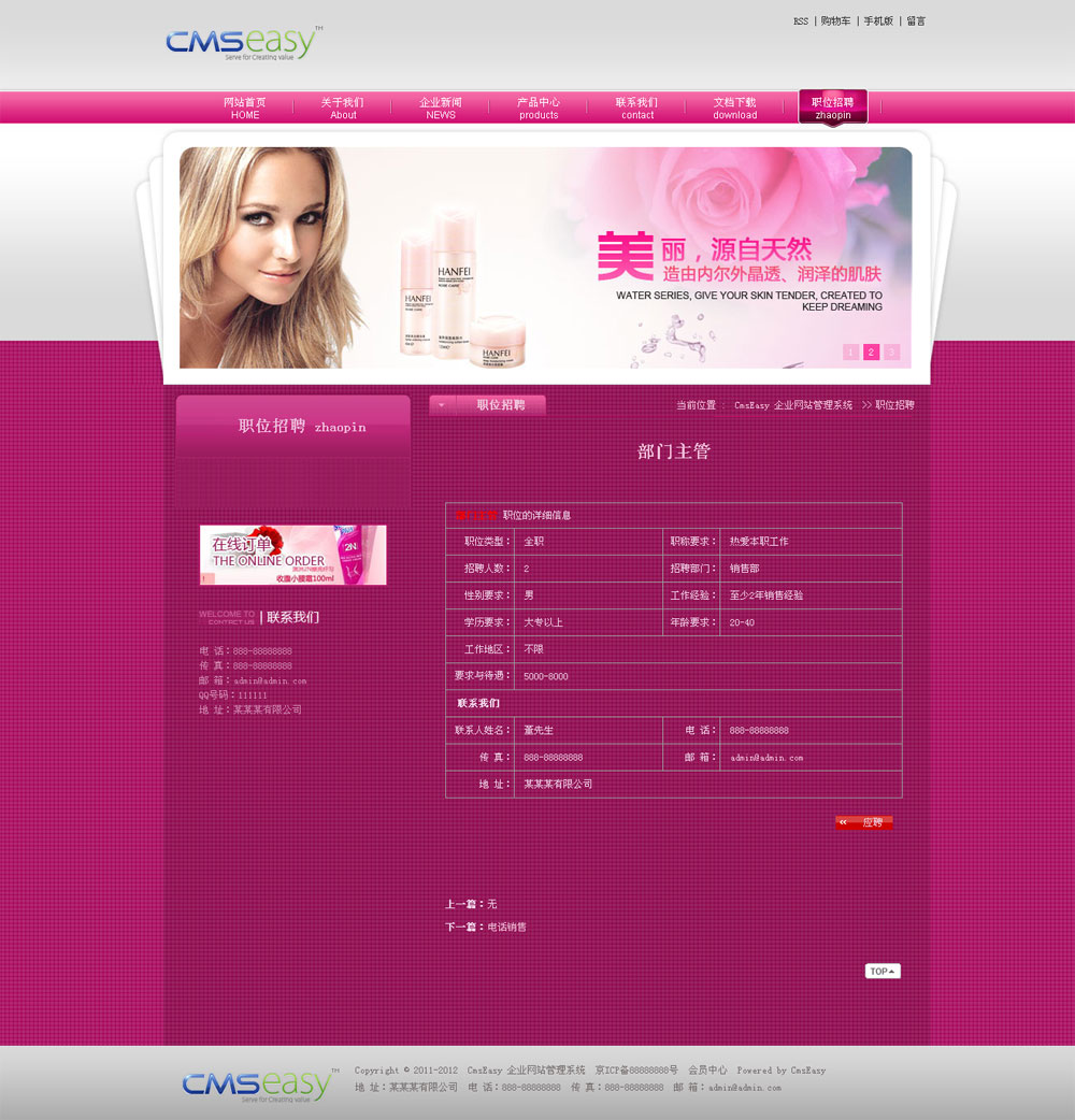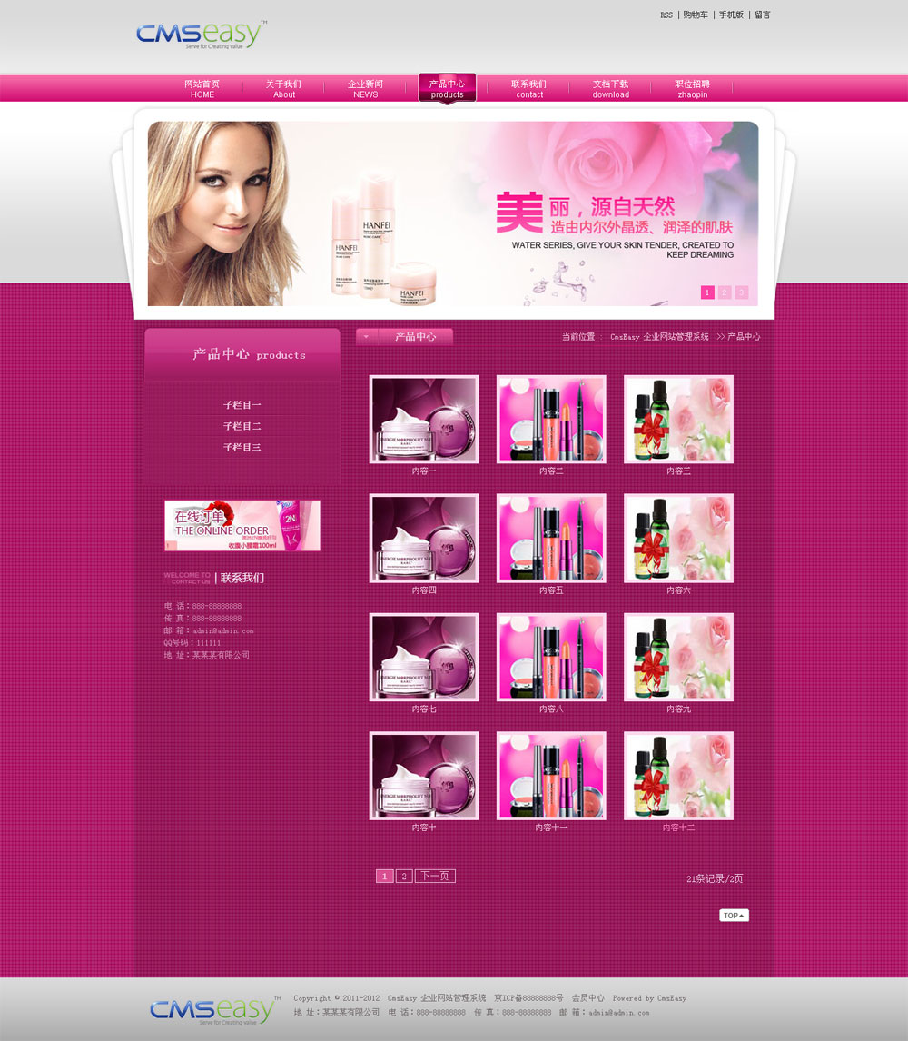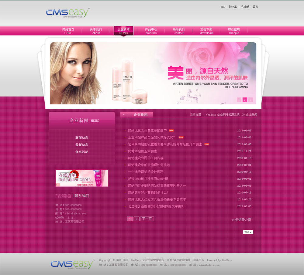 粉色美容化妆公司网站模板
