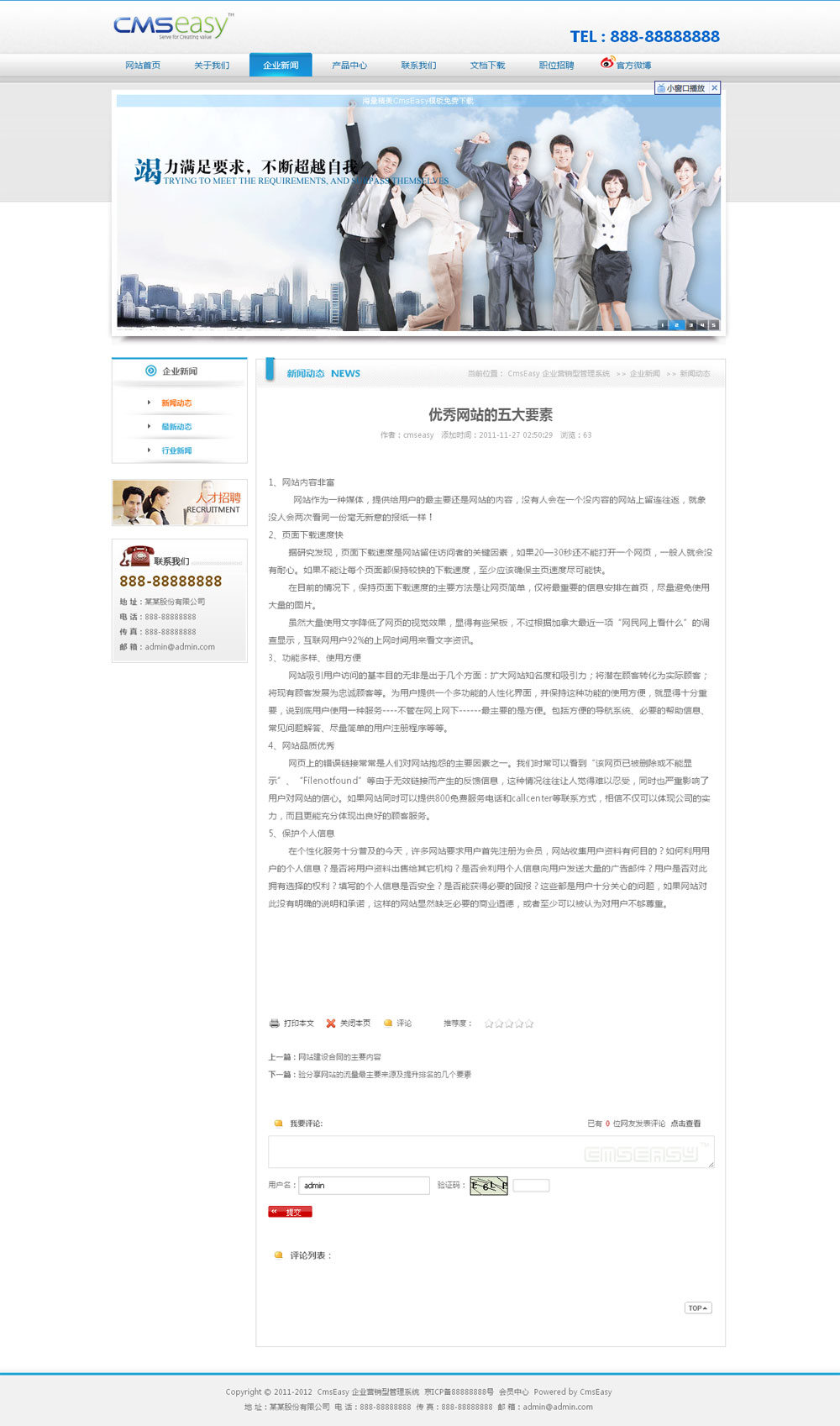 免费系统可以使用商业模板,但前后台要保留易通企业网站系统的软件版权。如果要购买去除版权请点击      购买授权