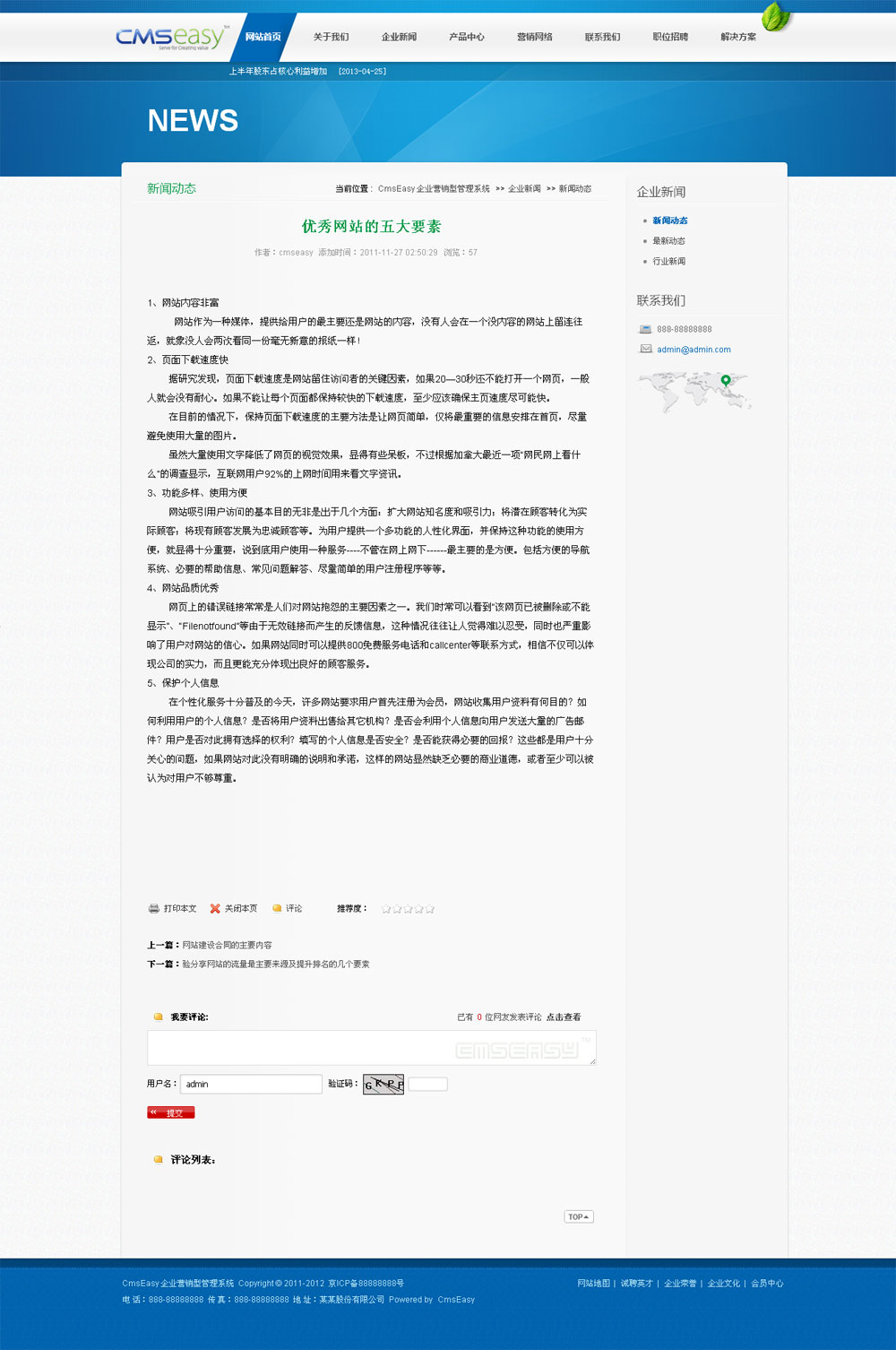免费系统可以使用商业模板,但前后台要保留易通企业网站系统的软件版权。如果要购买去除版权请点击      购买授权