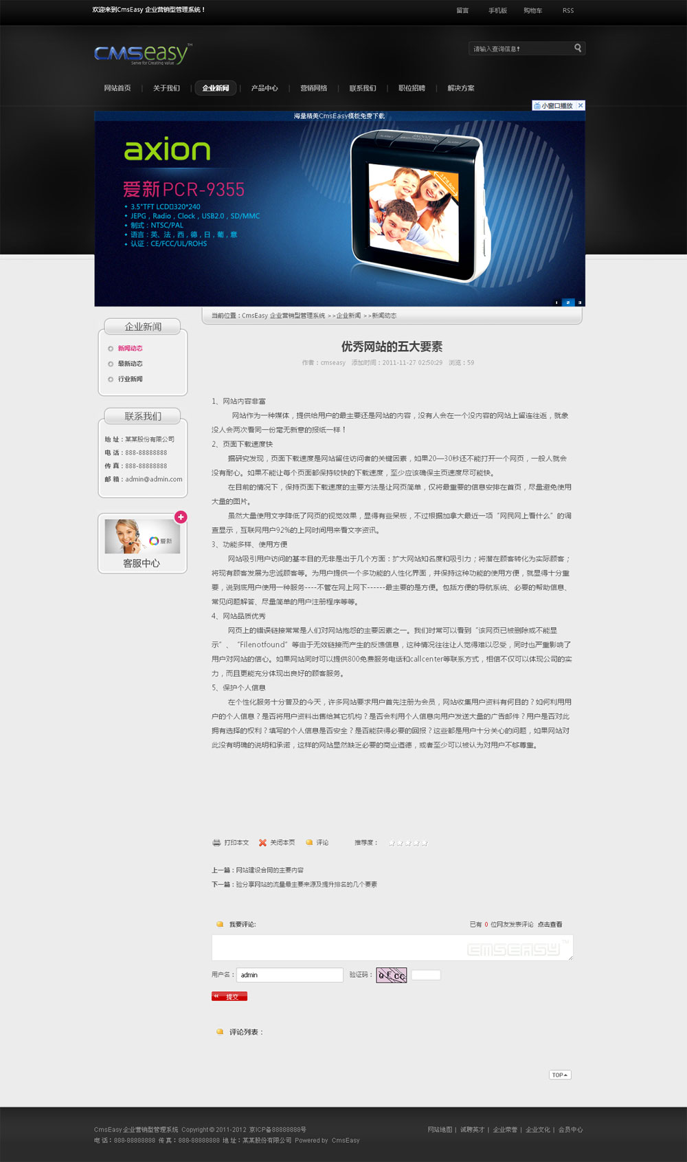 免费系统可以使用商业模板,但前后台要保留易通企业网站系统的软件版权。如果要购买去除版权请点击      购买授权