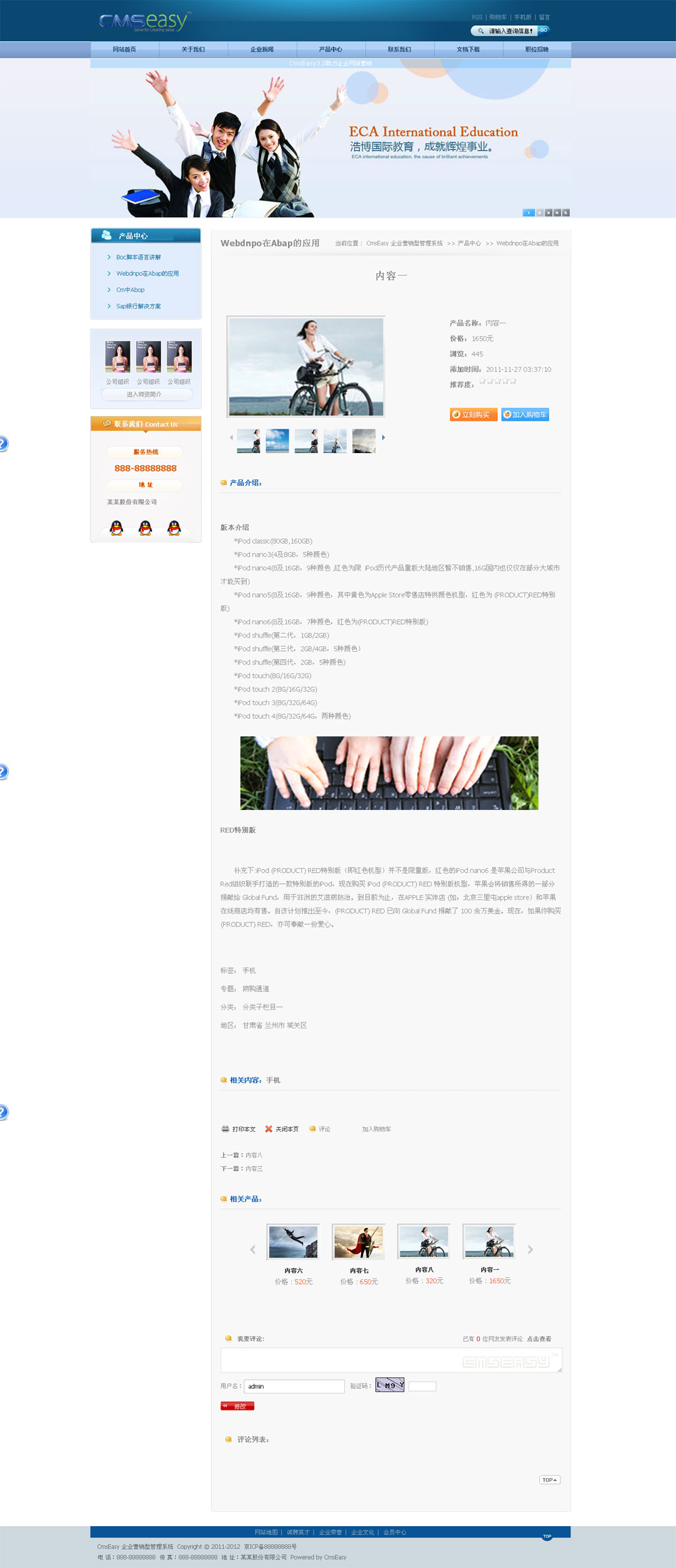 免费系统可以使用商业模板,但前后台要保留易通企业网站系统的软件版权。如果要购买去除版权请点击      购买授权