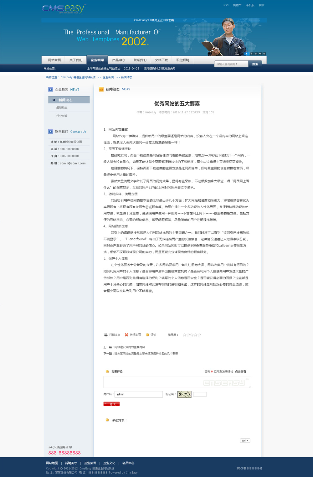 免费系统可以使用商业模板,但前后台要保留易通企业网站系统的软件版权。如果要购买去除版权请点击      购买授权