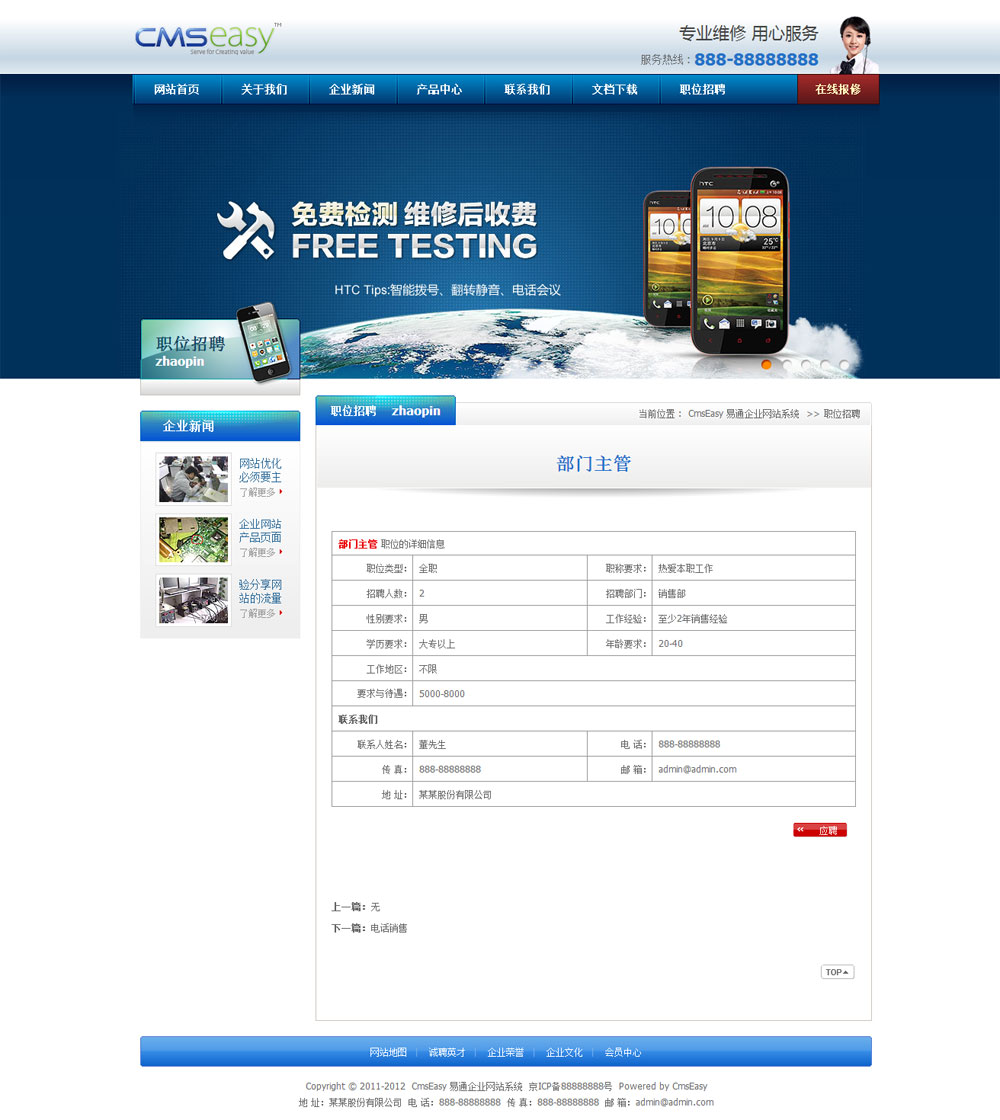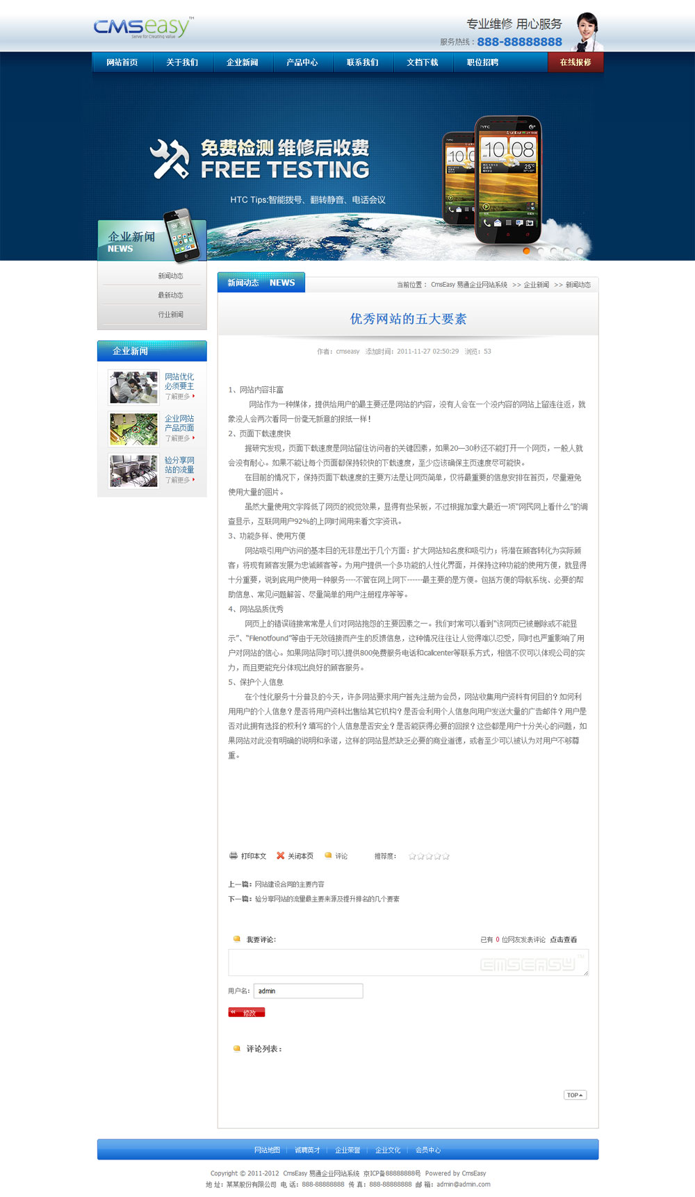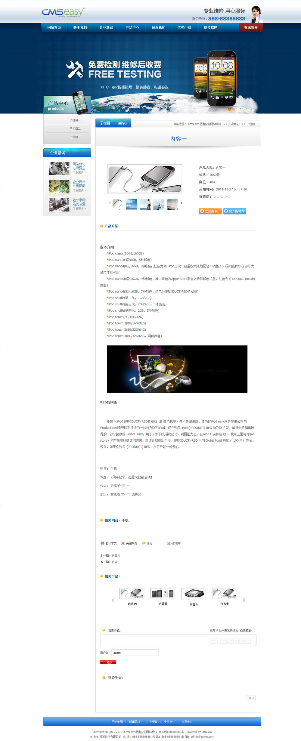 免费系统可以使用商业模板,但前后台要保留易通企业网站系统的软件版权。如果要购买去除版权请点击      购买授权
