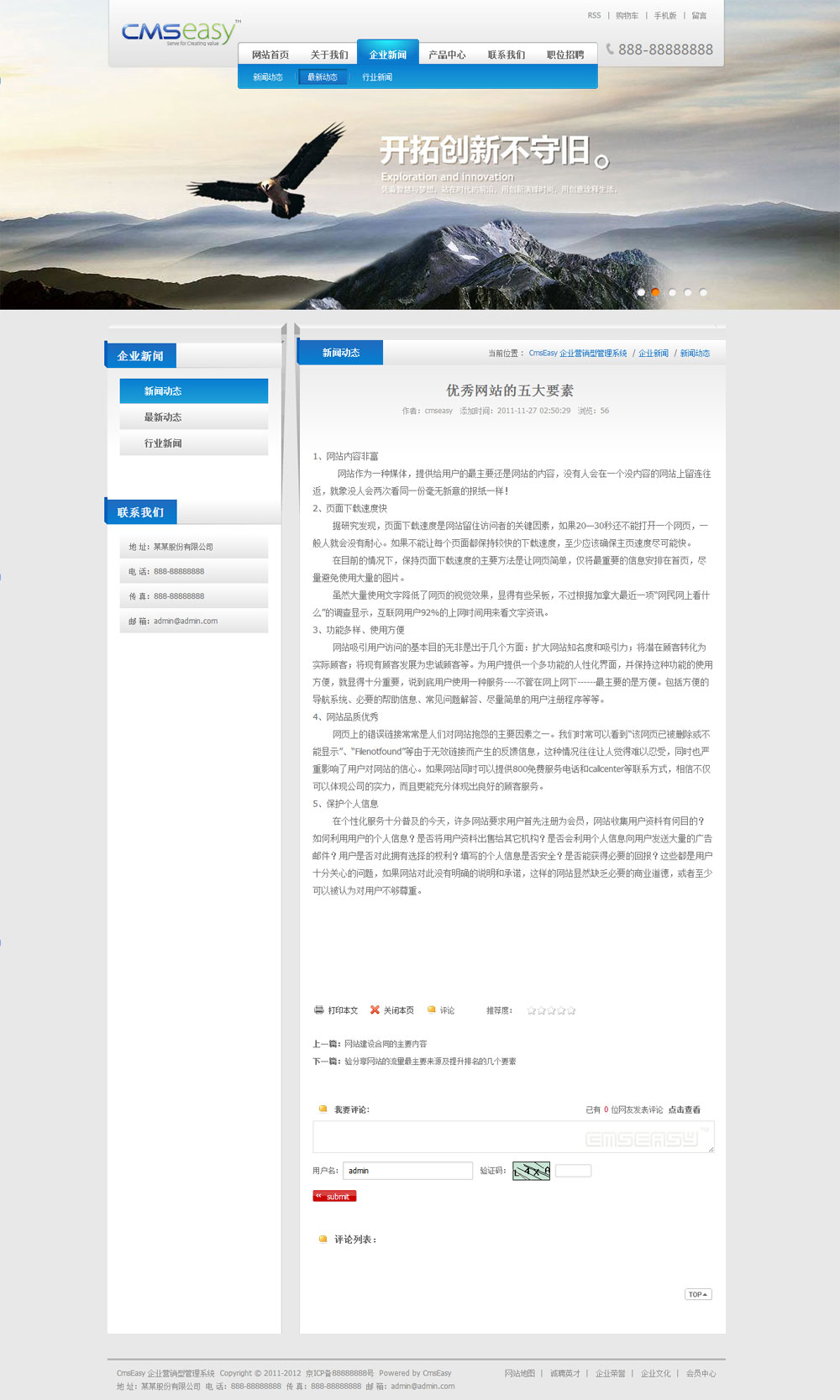 免费系统可以使用商业模板,但前后台要保留易通企业网站系统的软件版权。如果要购买去除版权请点击      购买授权