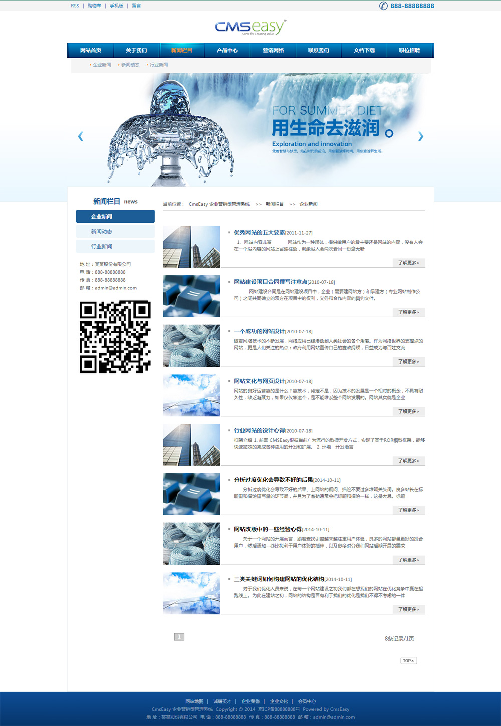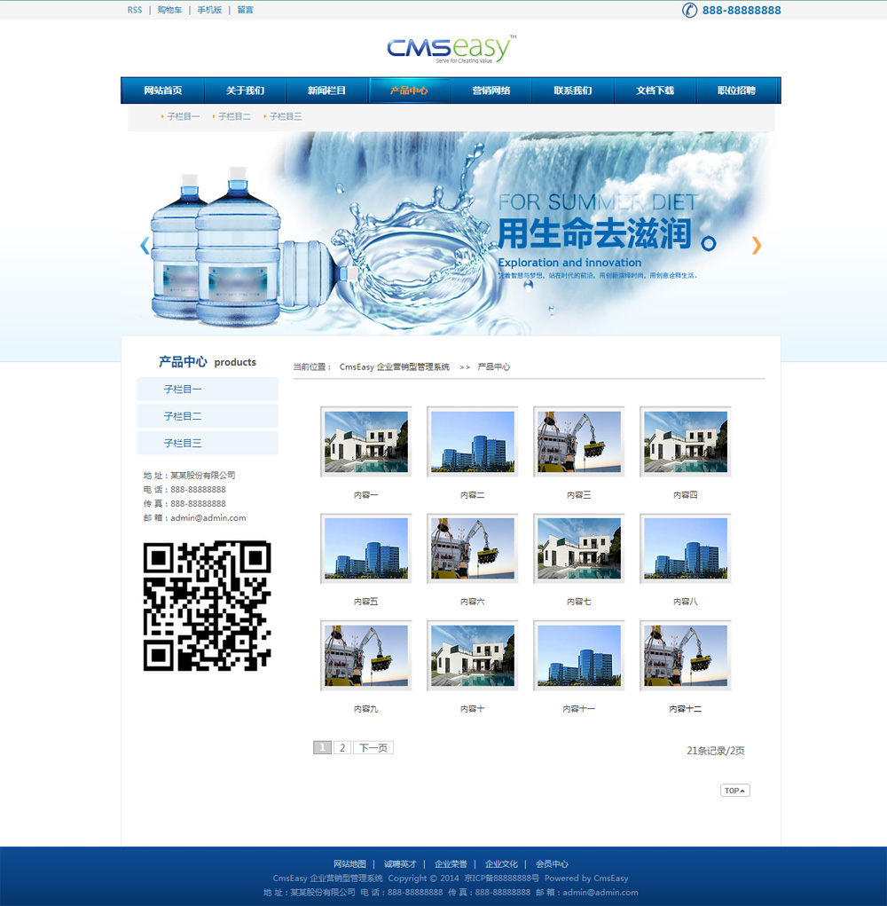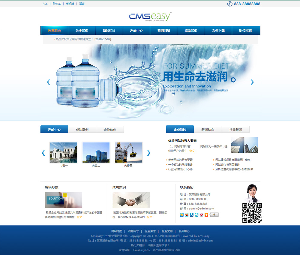 蓝色环保纯净水公司网站模板