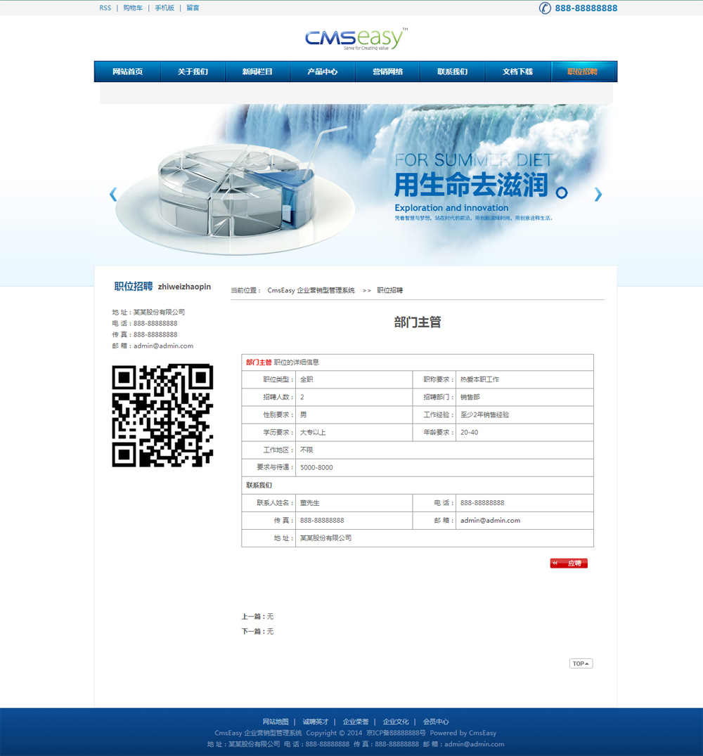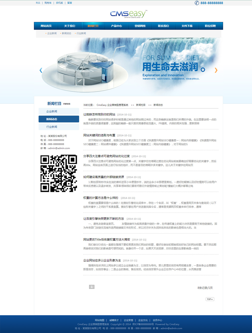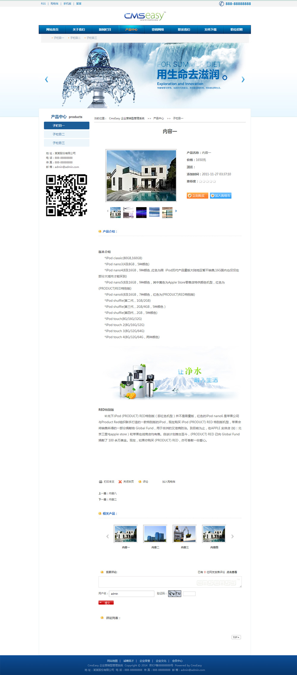 蓝色环保纯净水公司网站模板
