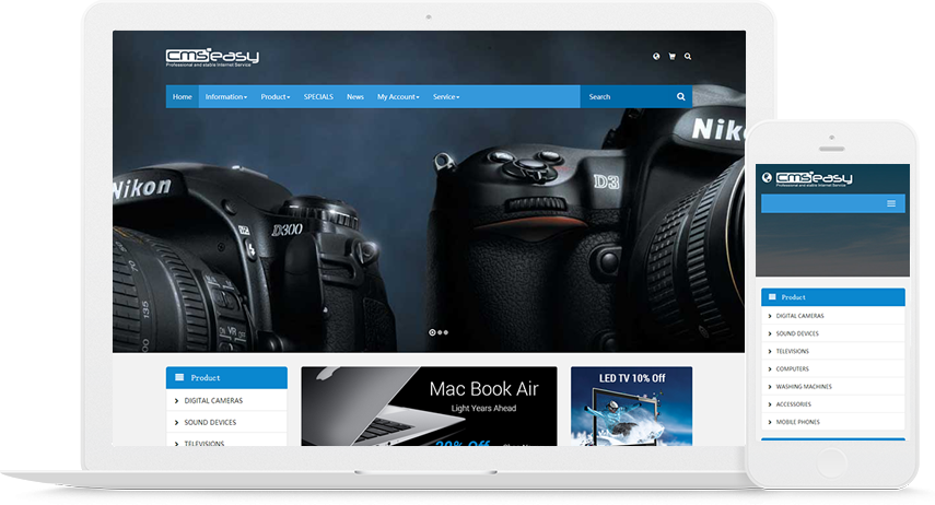 响应式网站模板无需设置其他终端,直接调用后台内容,使用简单方便。 但若需要独立的手机端,后台也可以开启手机端独立模板。