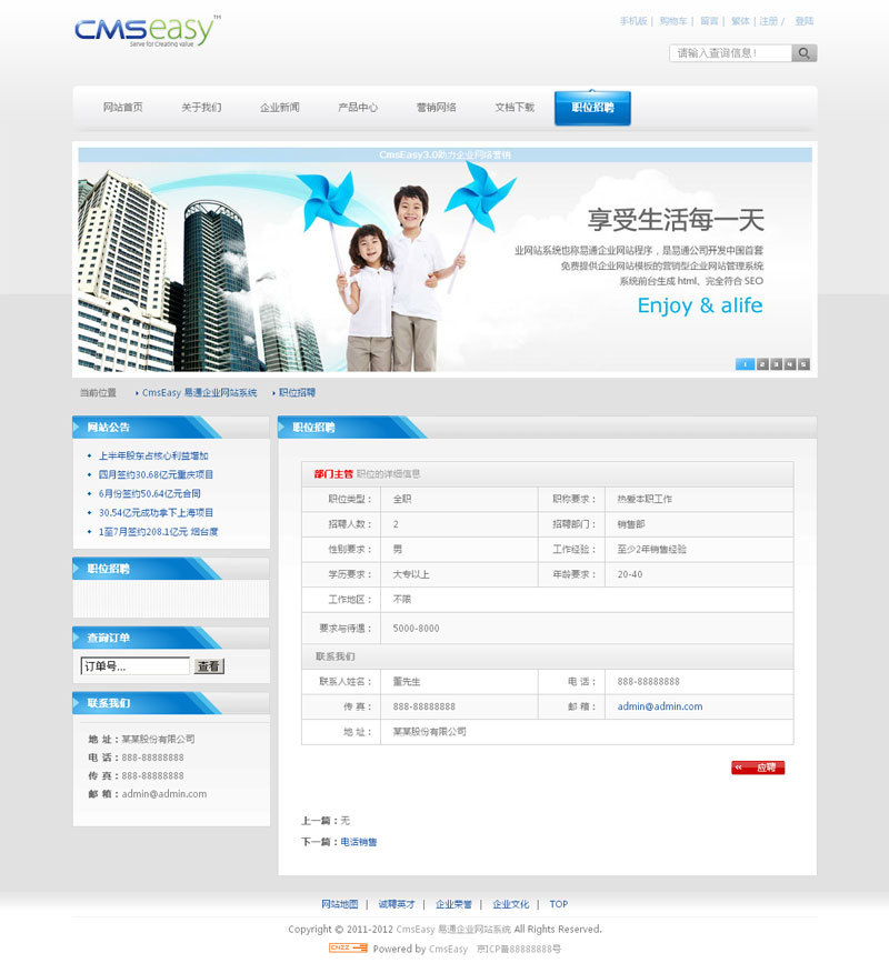 免费系统可以使用商业模板,但前后台要保留易通企业网站系统的软件版权。如果要购买去除版权请点击      购买授权