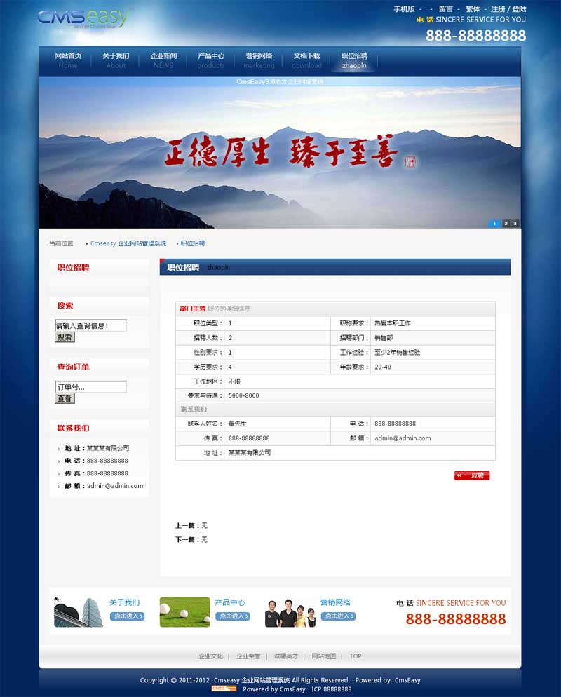 深蓝大气稳重集团企业网站模板,公司网站模板