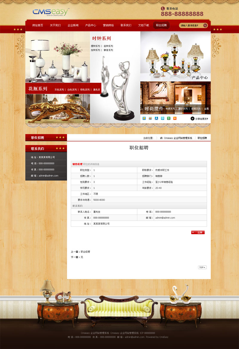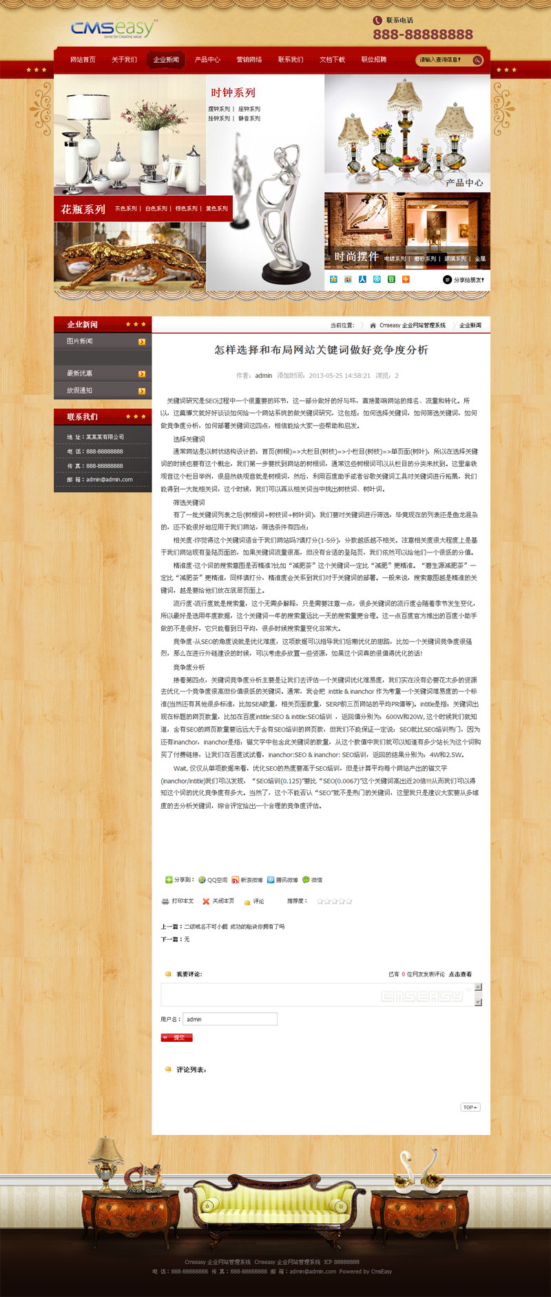 模板的界面风格是固定无法修改的(框架、区块、页面色调等),内容可在后台自行修改,如有细节需要调整请咨询销售人员另外付费处理;