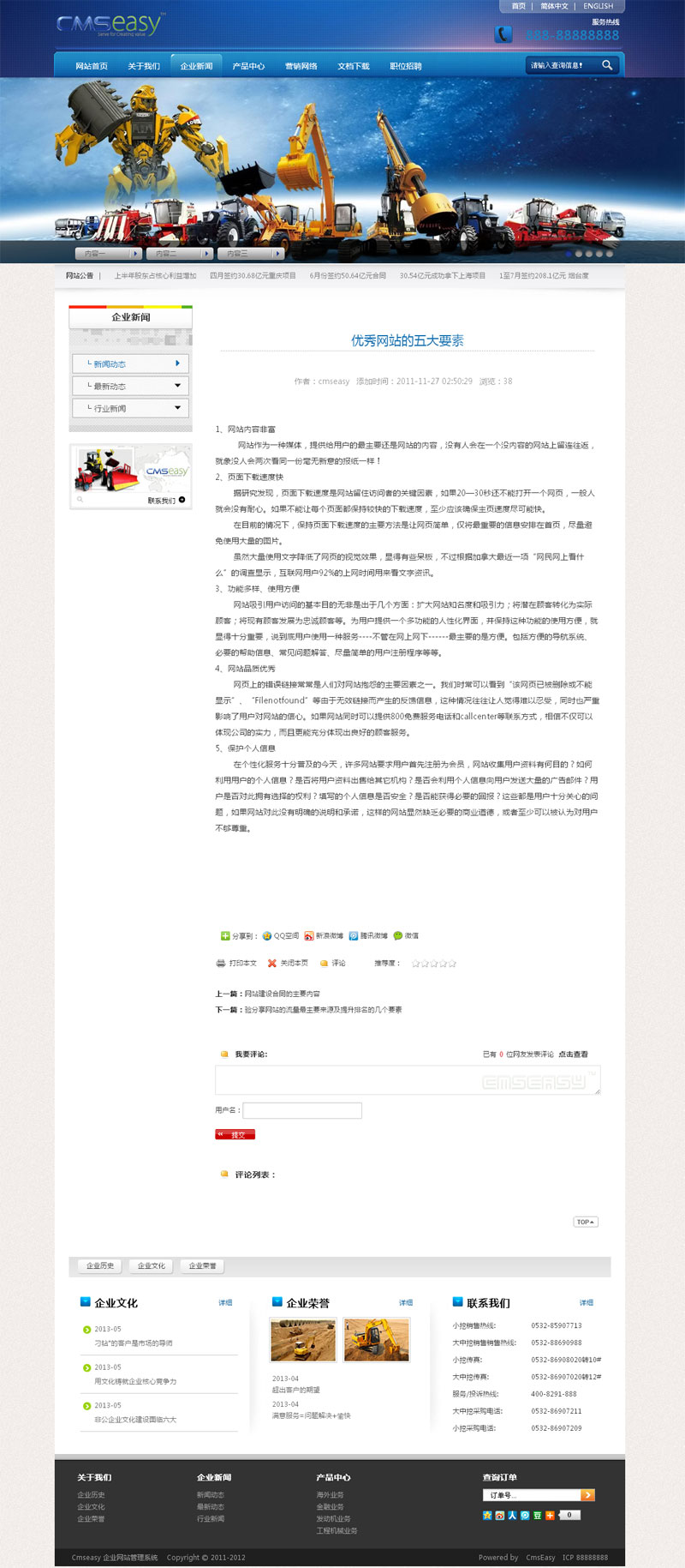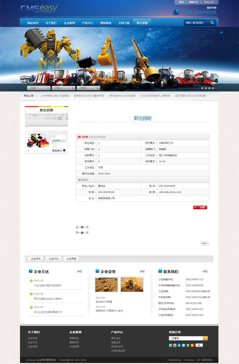 蓝色机械建工网站模板