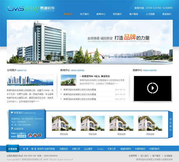 蓝色房地产企业网站模板,公司网站模板