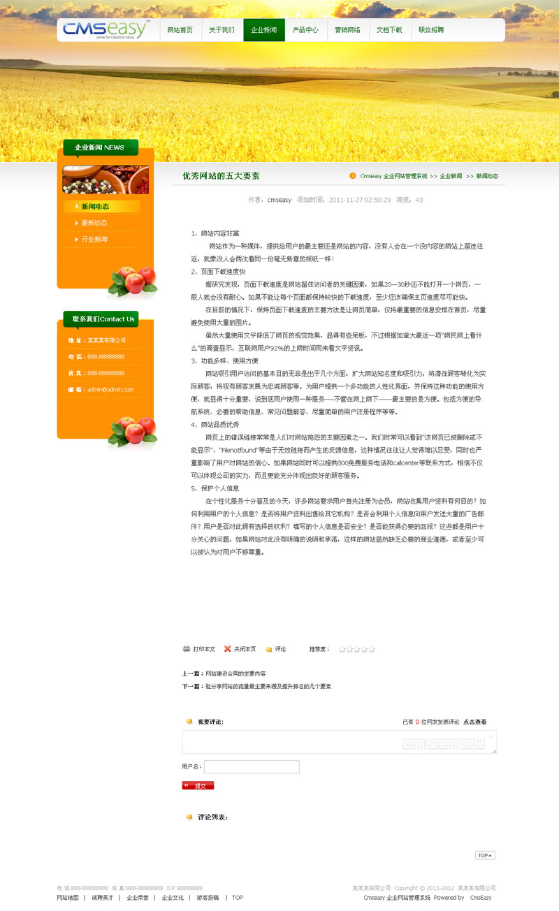 免费系统可以使用商业模板,但前后台要保留易通企业网站系统的软件版权。如果要购买去除版权请点击      购买授权