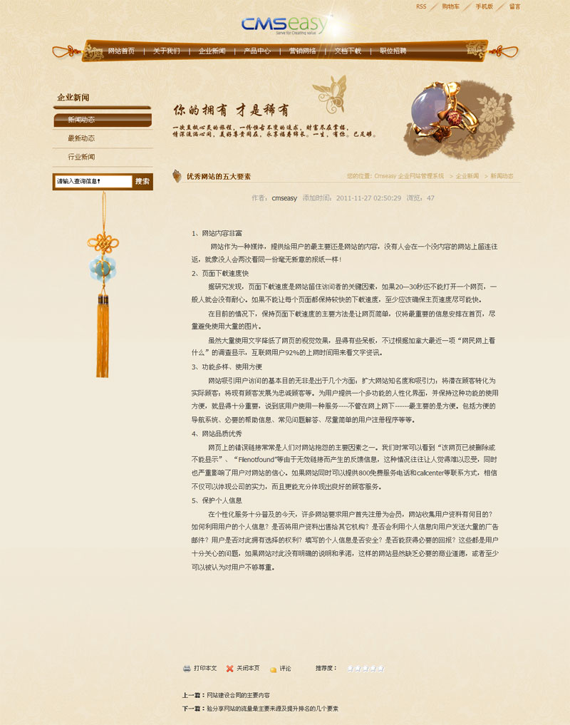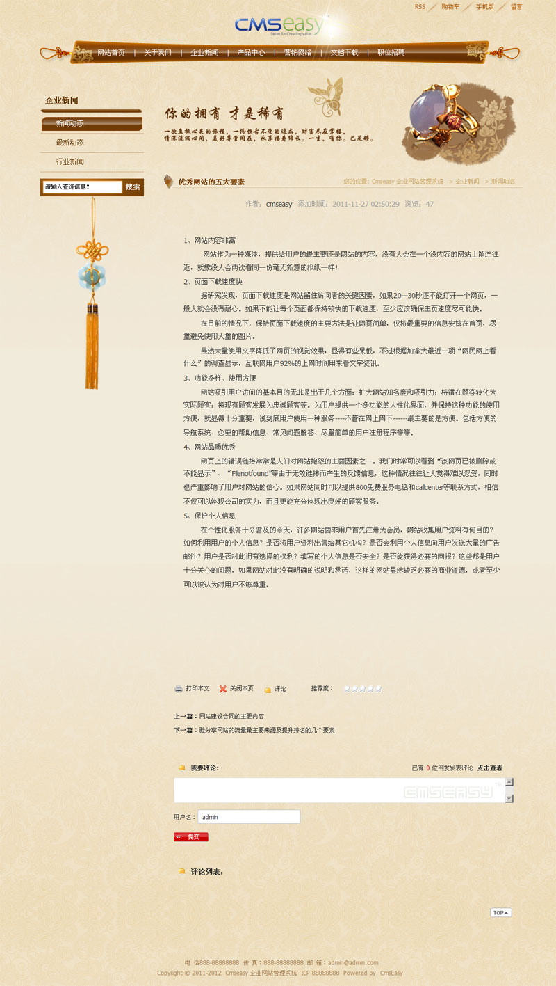 古典珠宝产品企业网站模板,公司网站模板