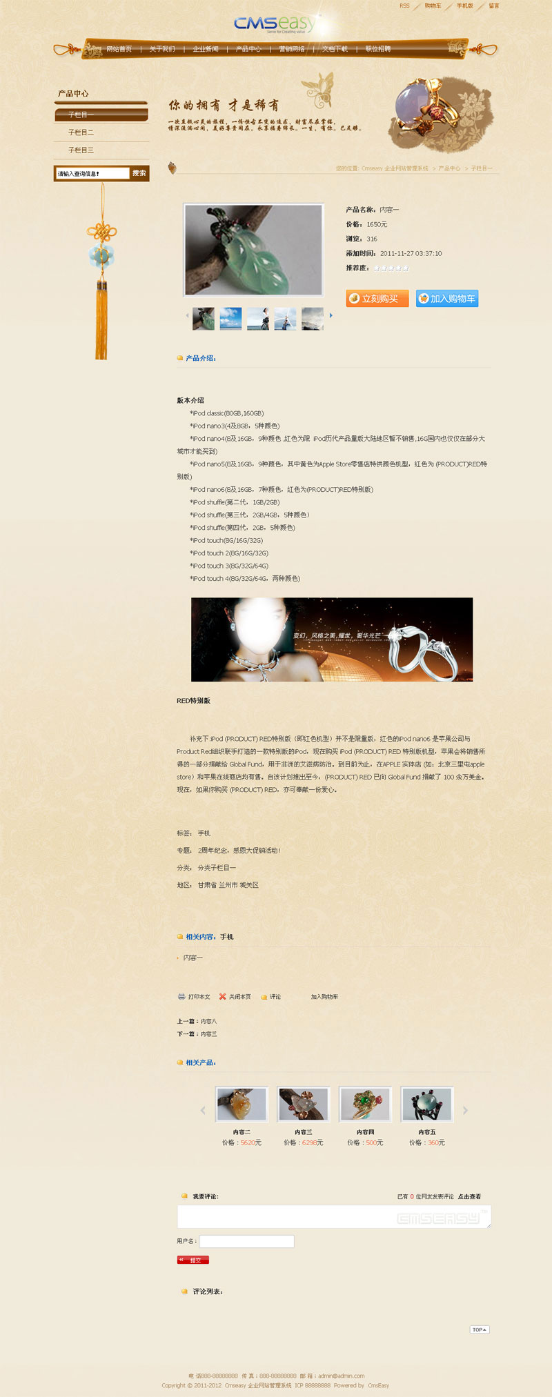 • 古典珠宝产品企业网站模板,公司网站模板