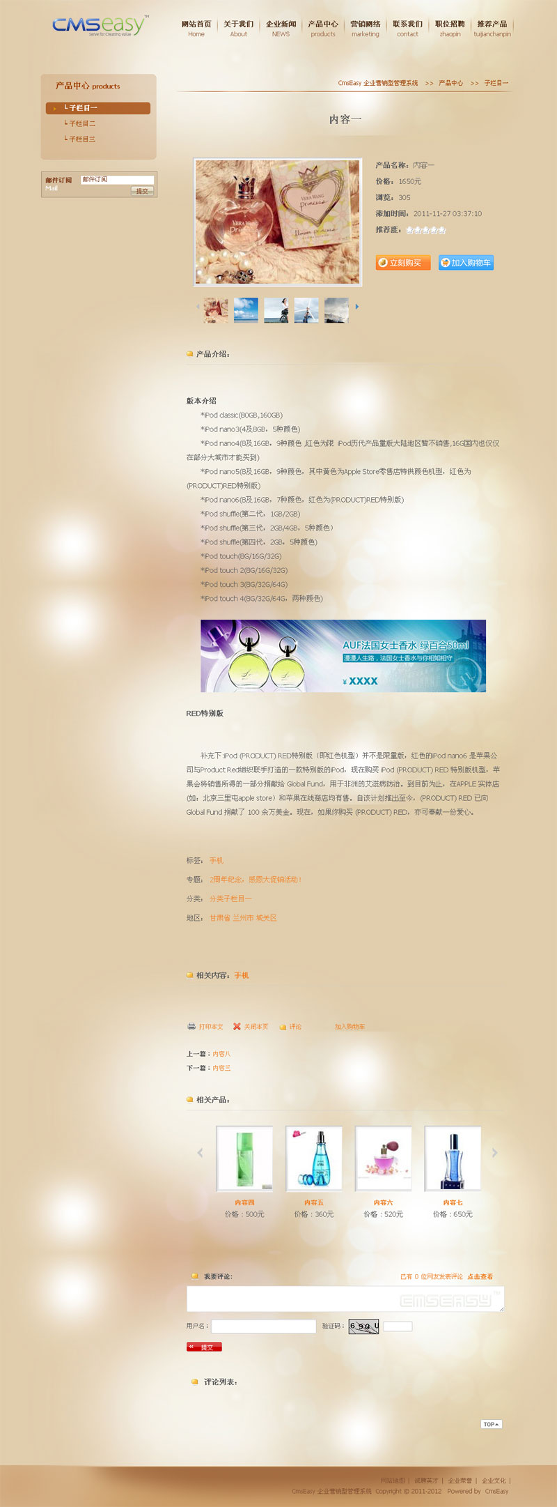 • 漂亮的褐色女性化妆品企业网站模板,公司网站模板