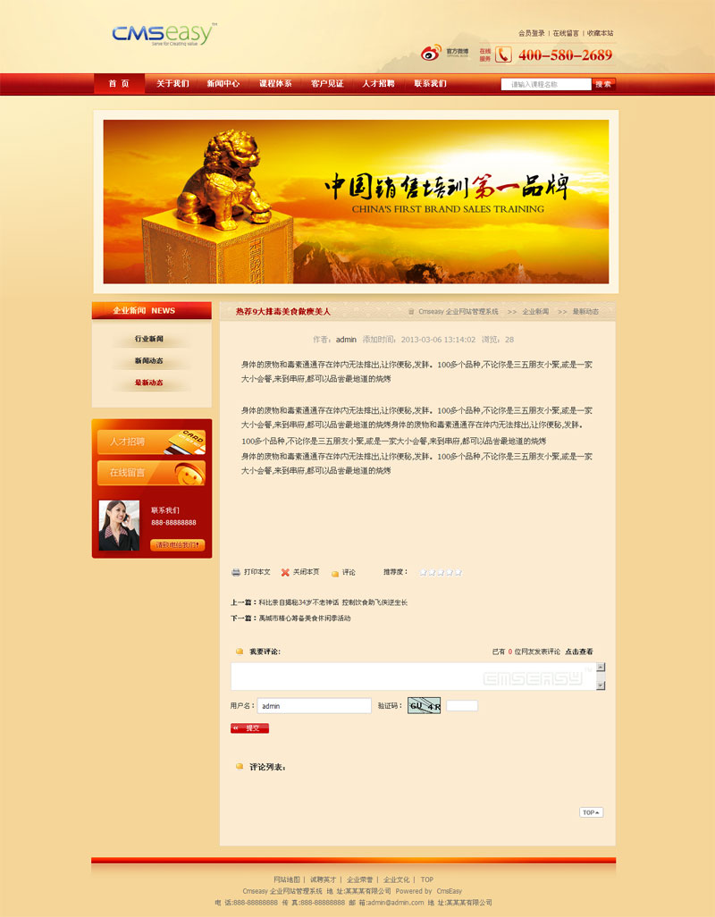 免费系统可以使用商业模板,但前后台要保留易通企业网站系统的软件版权。如果要购买去除版权请点击      购买授权