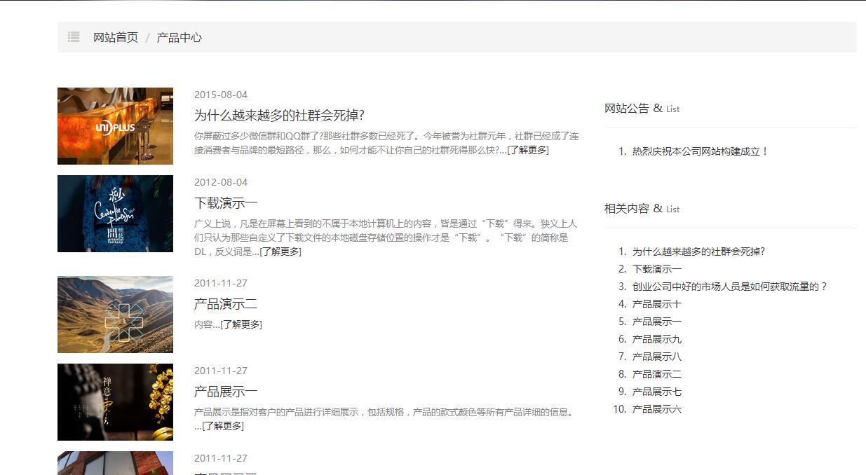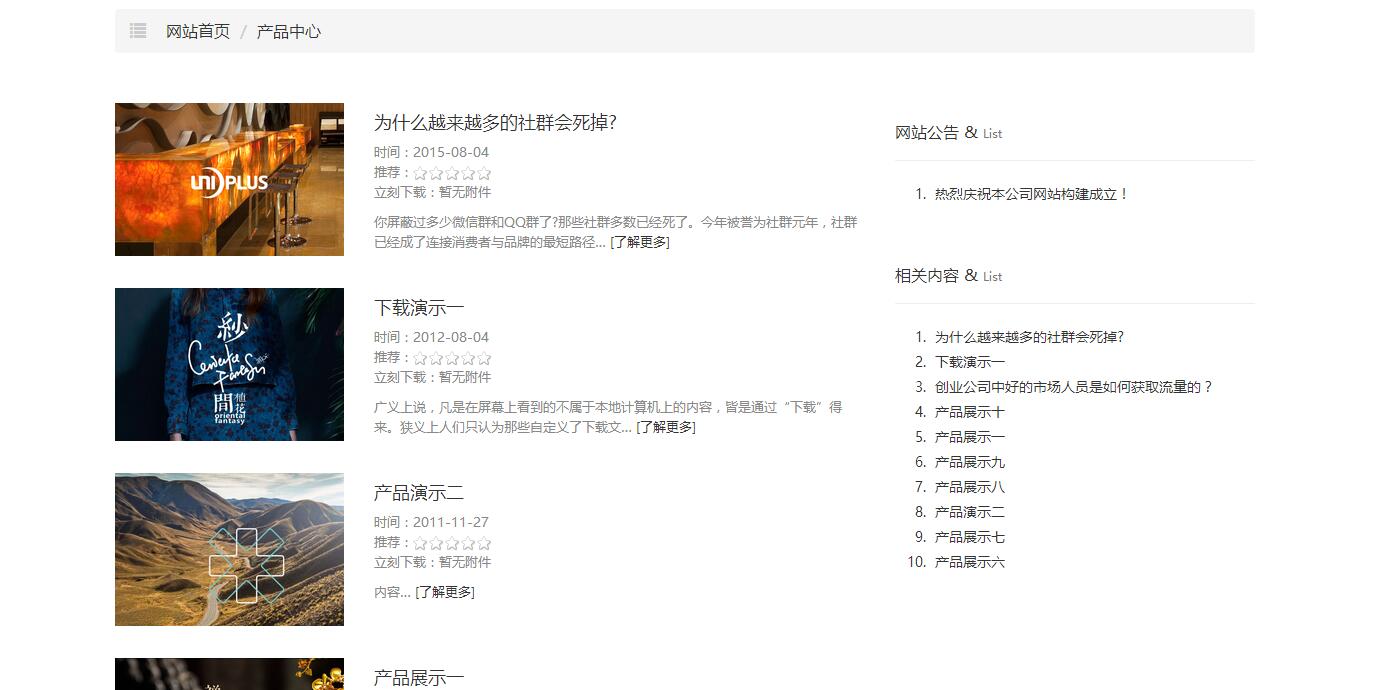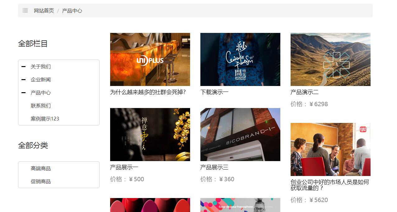 网站栏目的样式有多达十多种预制样式供使用者选择,如: