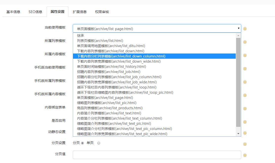 改变栏目展示外观样式