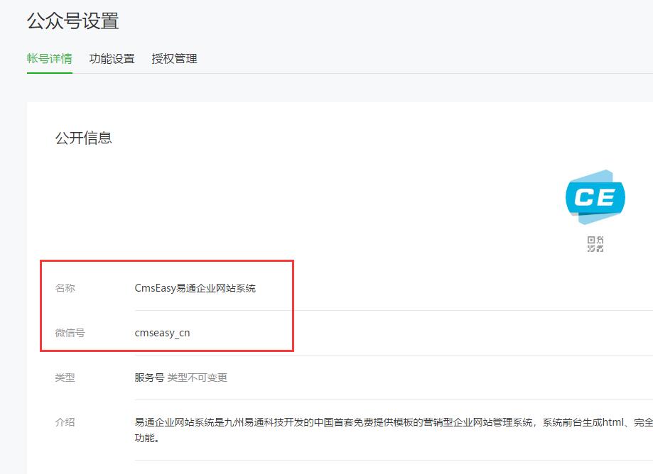 信息内容在登录微信公众号 https://mp.weixin.qq.com/后右上角,点击 [ 公众号名称 ] - [ 账号详情 ] ,如图: