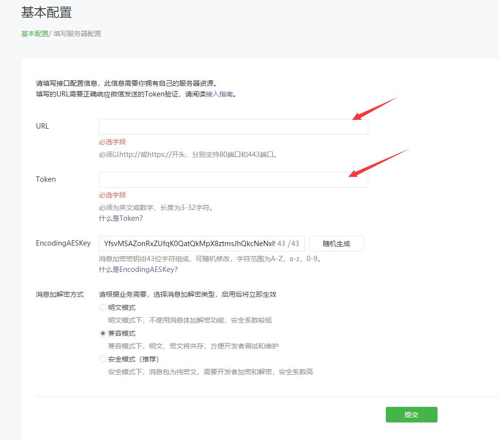 进入填写微信公众号信息页面,逐个填写三个信息,如图: