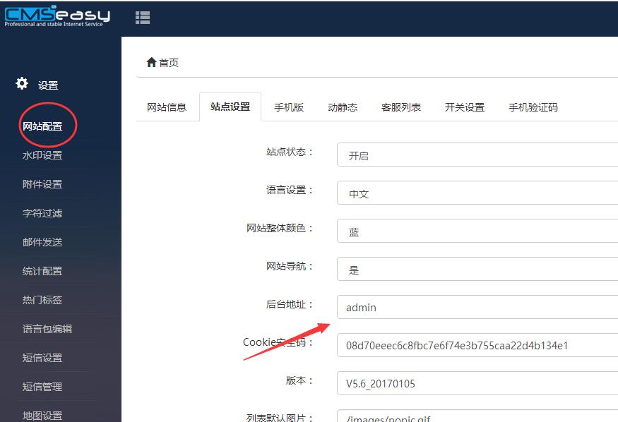 方法是登陆网站后台 - [ 设置 ] - [ 网站配置 ] - [ 后台地址 ] - [ 站点设置 ] 中修改。