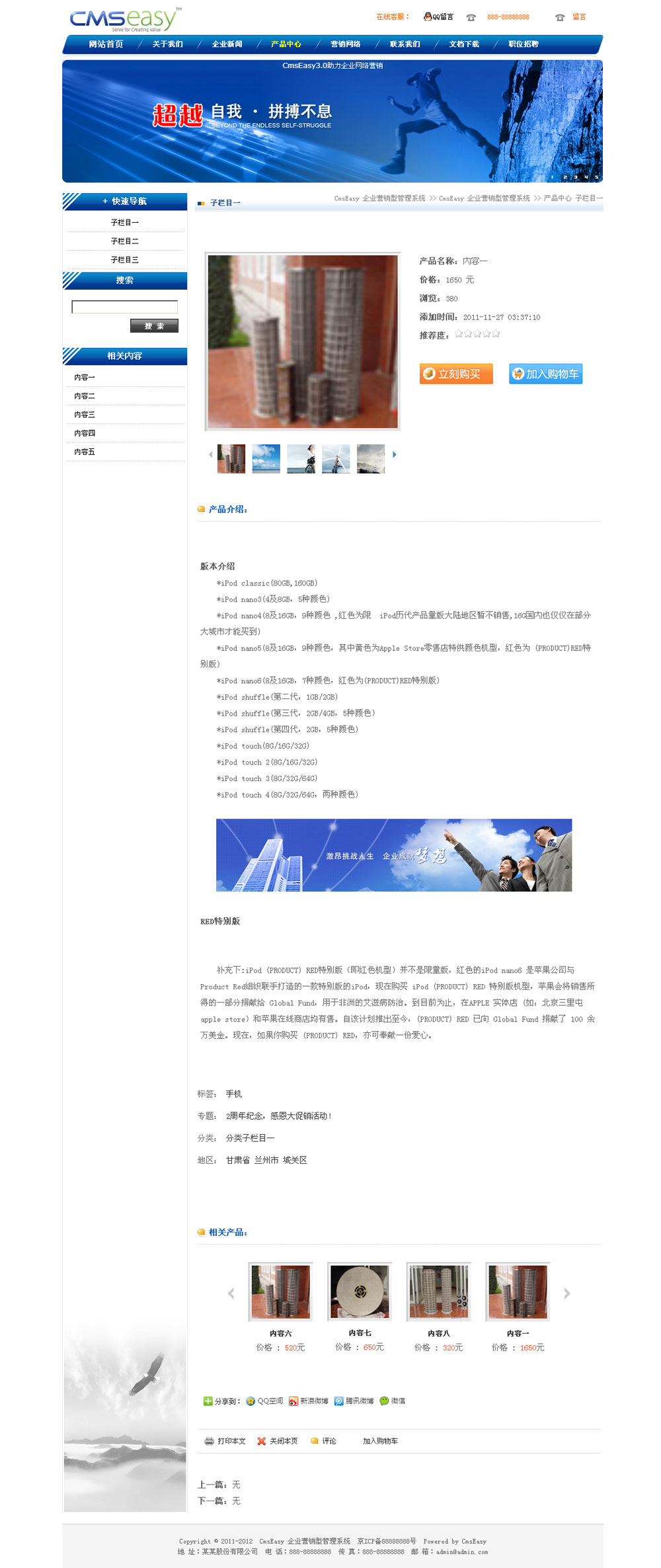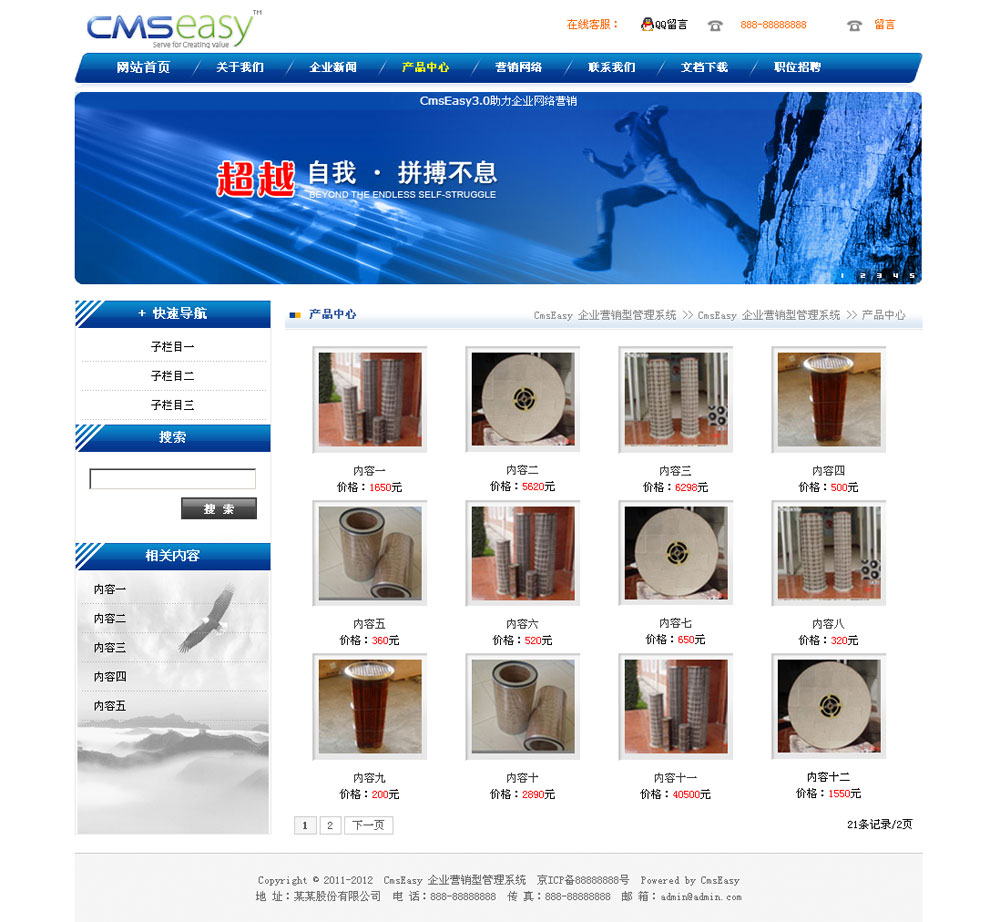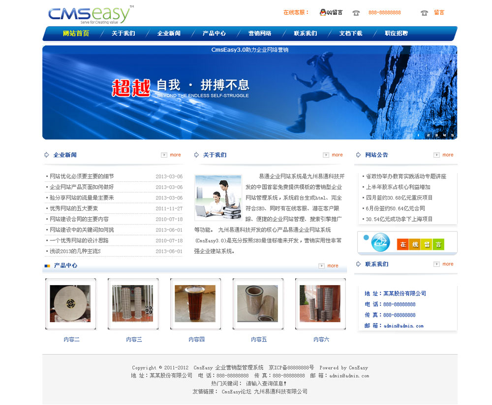 蓝色经典贸易公司企业网站模板,公司网站模板